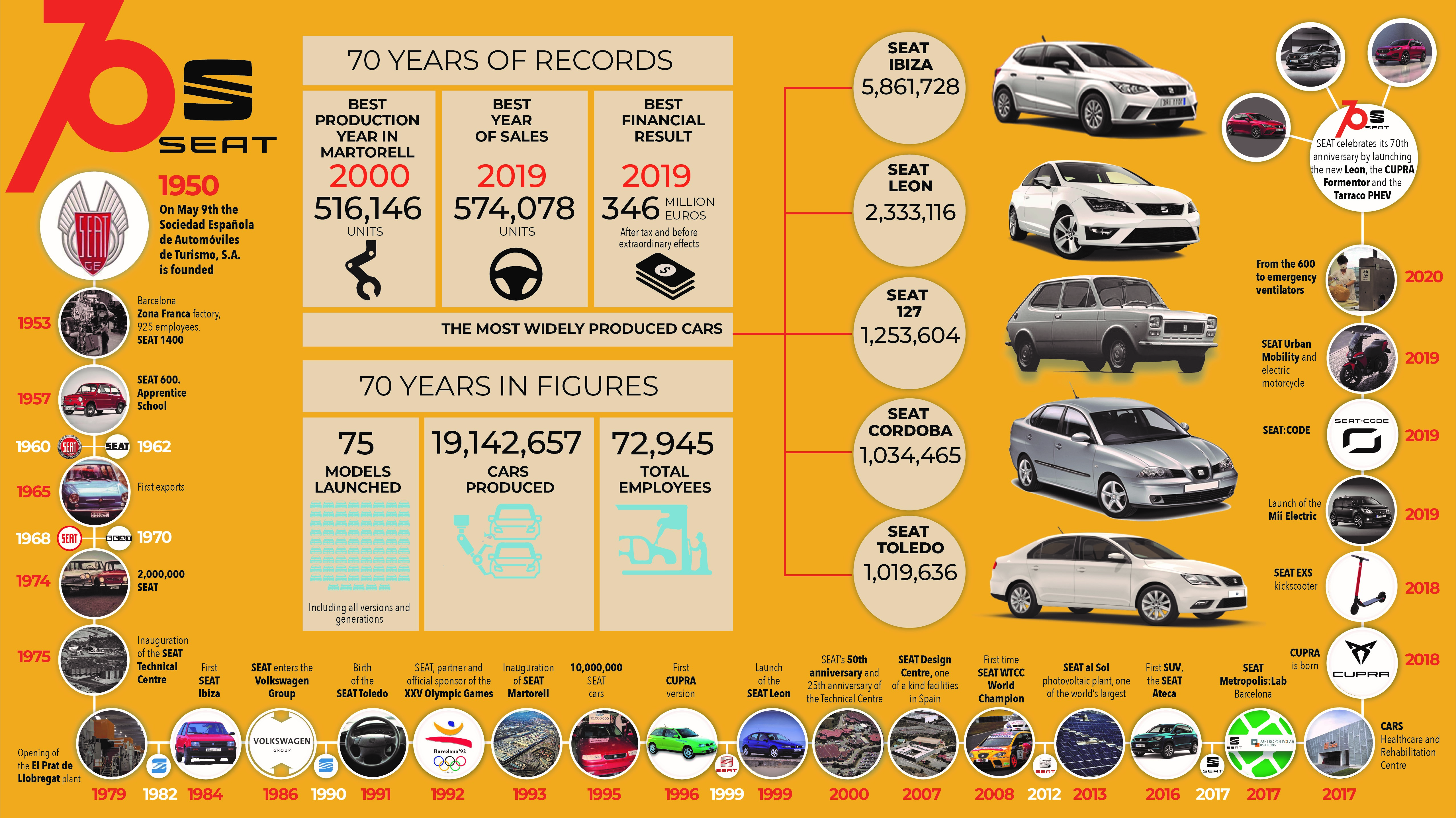 - SEAT grundades den 9 maj 1950 och firar i år sitt 70-årsjubileum