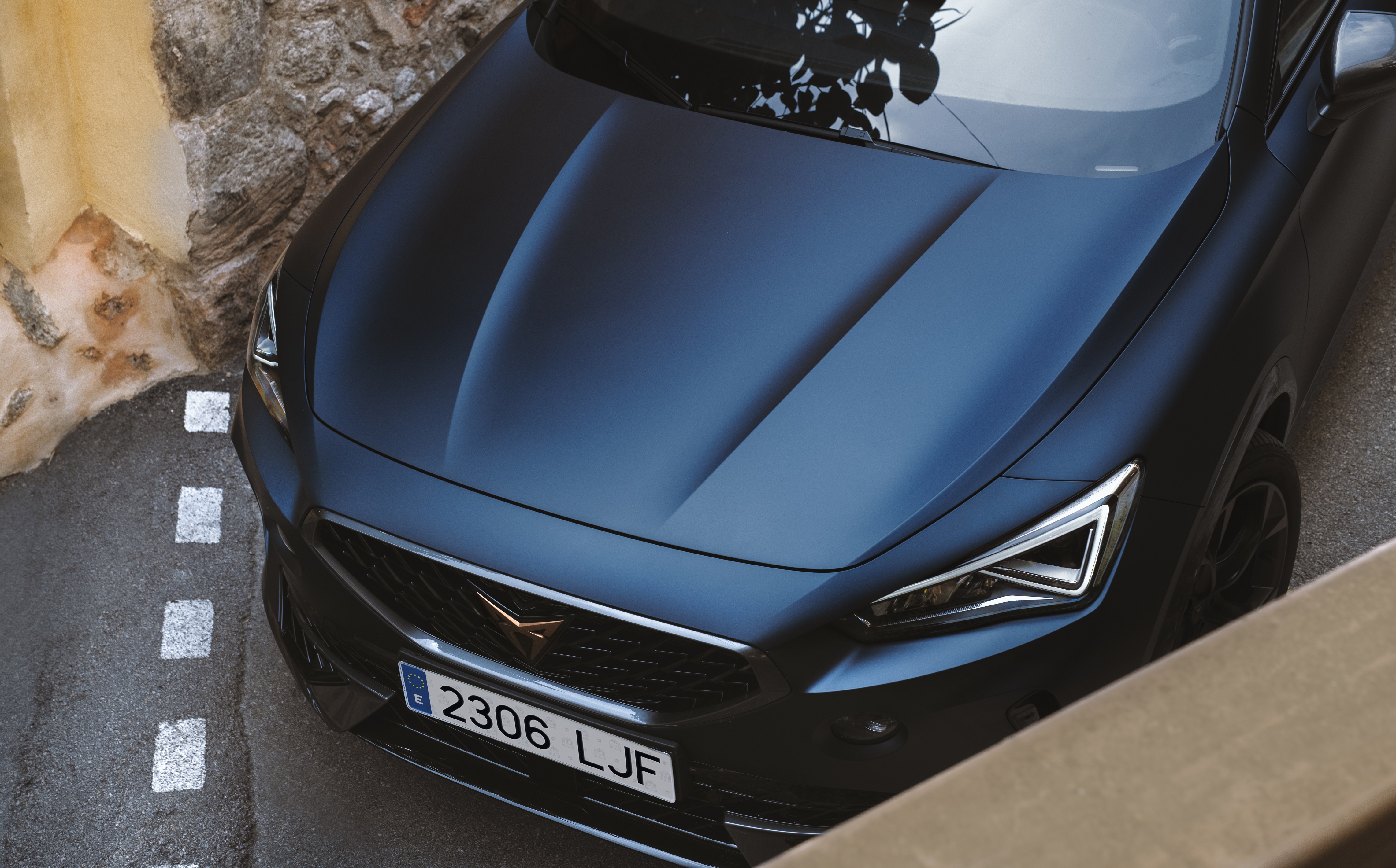 CUPRA Formentor blandar SUV:ens terrängegenskaper med en halvkombis sportiga karaktär och en coupés smidiga siluett. CUPRA Formentor har en stark personlighet och är utmejslad för att framhäva sina olika egenskaper på ett mycket uttrycksfullt sätt. Den ligger närmare vägbanan vilket ger bilen en ännu sportigare look. Den visuella tonvikten på bakpartiet och den accentuerat långsträckta motorhuven, framhäver de dynamiska proportionerna extra kraftfullt.