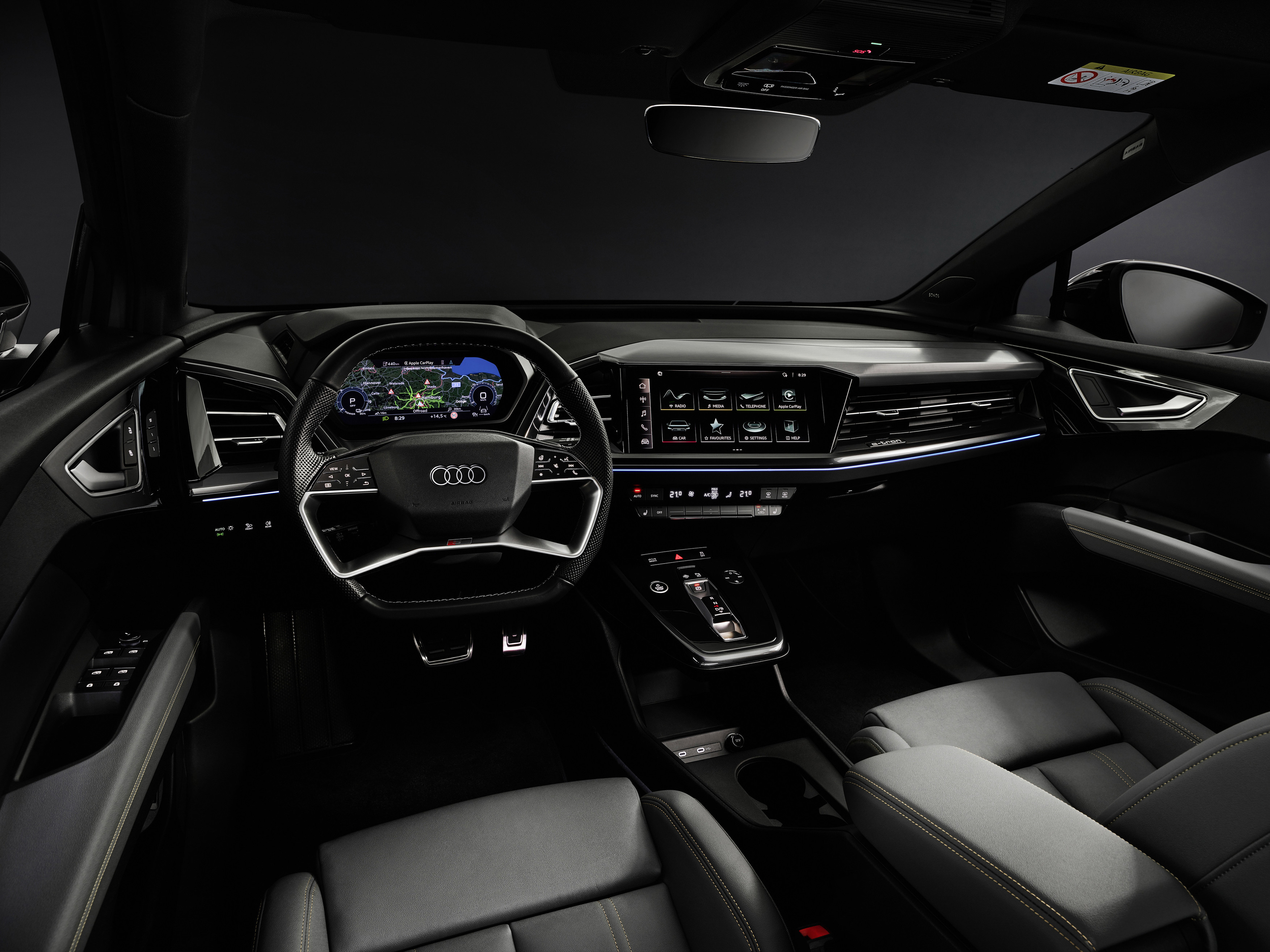Audi lyfter på täcket och visar upp interiören i kommande Audi Q4 e-tron. Tack vare den nya elbilsarkitekturen kommer den kompakta suven erbjuda en helt ny rymd som motsvarar betydligt större bilar. I förarmiljön möter flera nyheter: head-up display med augmented reality som sammanför den verkliga världen med den virtuella, en helt ny rattgeneration med touchreglage, säkerhetssäte med integrerad airbag samt praktiska förvaringsfack som rymmer ca 25 liter. Den luftiga och progressiva interiördesignen är resultatet av en ny teknisk era. Audi Q4 e-tron har världspremiär i mitten av april.