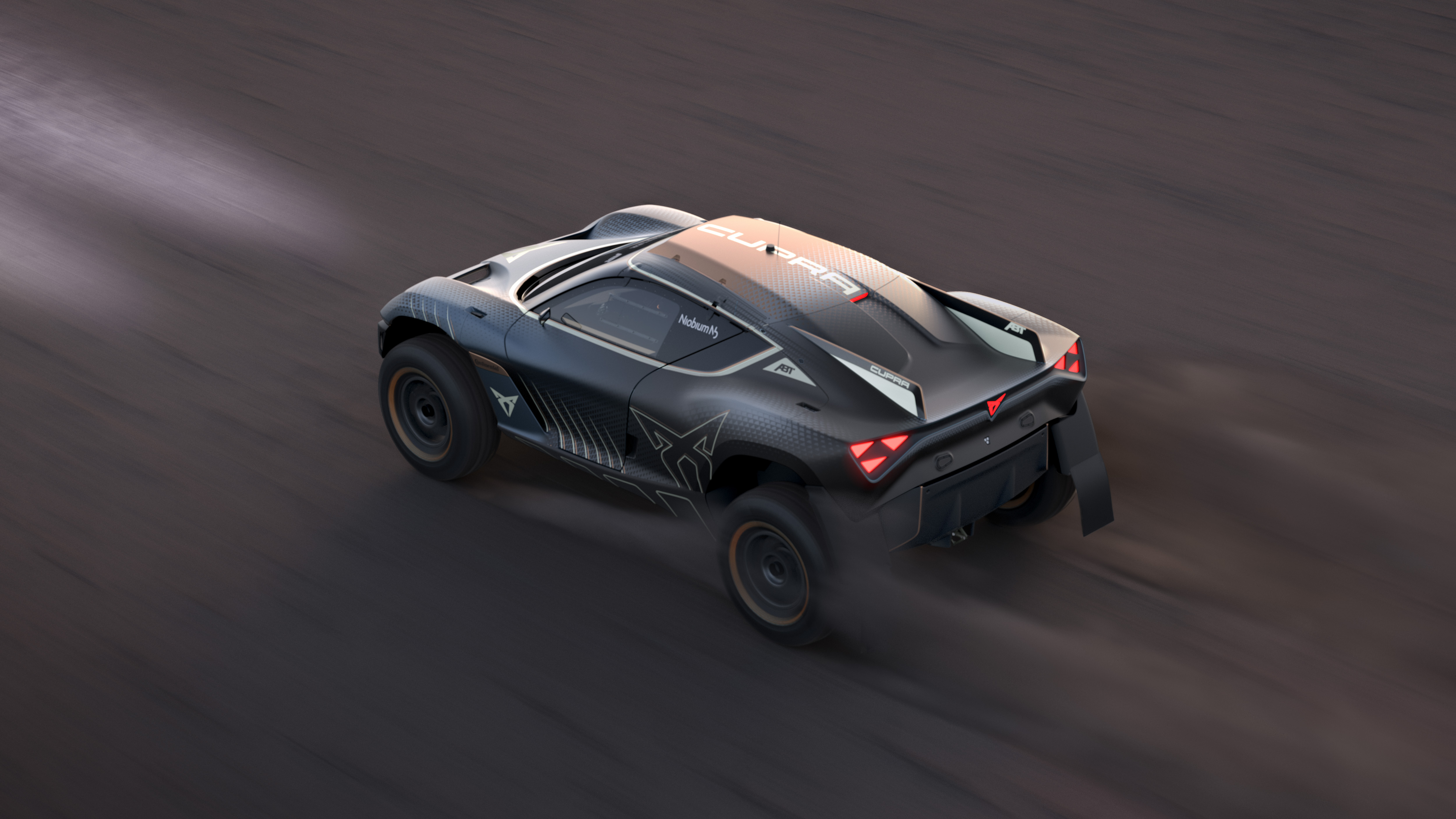 Den helelektriska off-road racern är utrustad med koppardetaljer, ett tydligt kännetecken hos CUPRA, parametrisk texturering och dynamiska linjer som skapar ett skimmer och skiftningar i exteriören när fordonet far genom det växlande landskapet med en CUPRA-logo som skapar en kraftfull 3D-effekt.