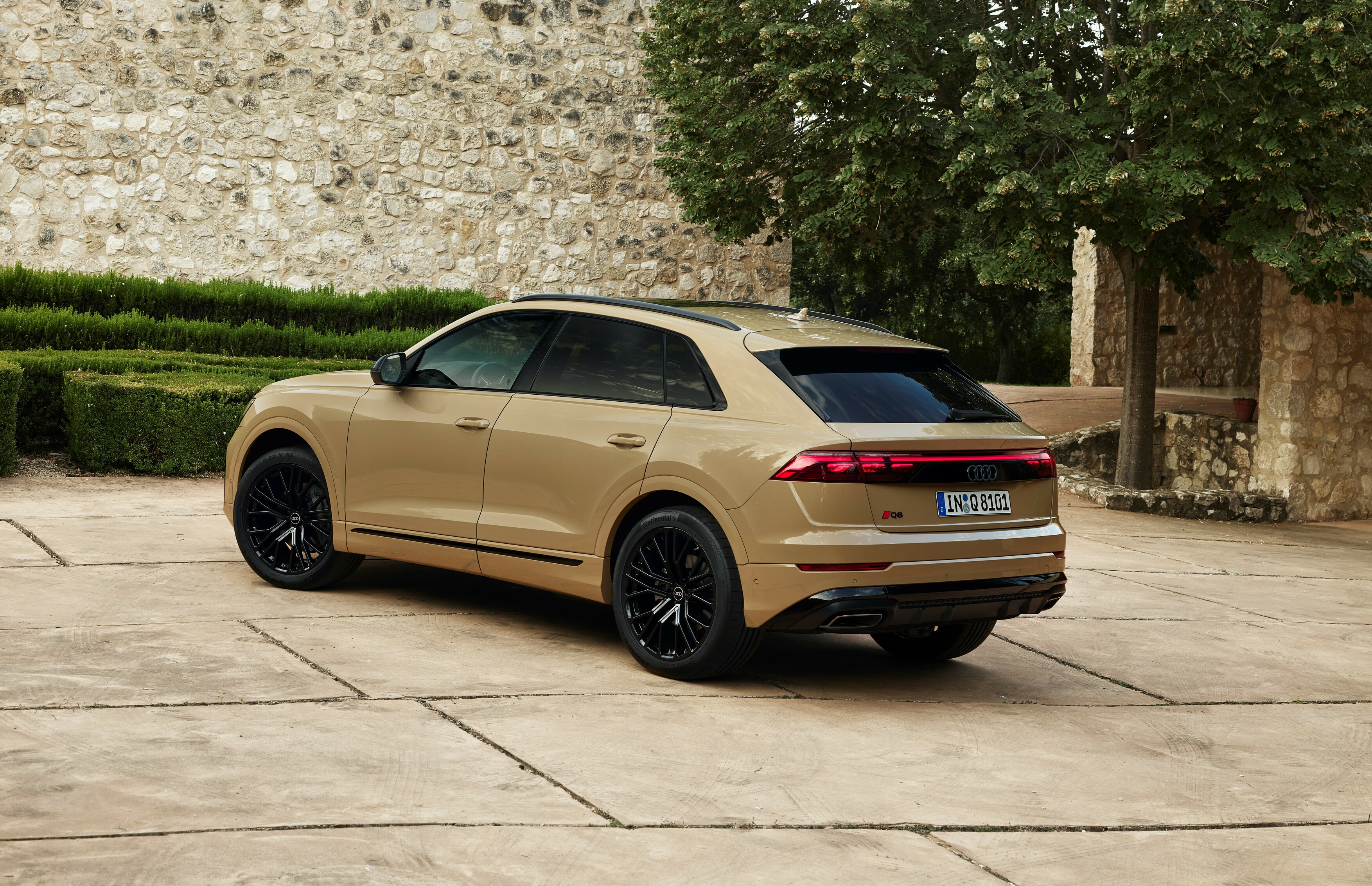 Med den senaste produktuppgraderingen har Audi förfinat utrustningsprogrammet ytterligare. Sätesklädseln har nu kontrasterande grå sömmarna i grundutförandet. Dessutom finns nio dekorinlägg att välja mellan. För att ytterligare understryka karaktären hos Q8 finns tre nya lacker tillgängliga. Audi Sport GmbH erbjuder Sakhirguld, Ascariblå och Chiliröd, alla i metallic. I fälgsortimentet går det dessutom att välja mellan fem nya fälgdesigner i storlekar från 21 till 23 tum.
