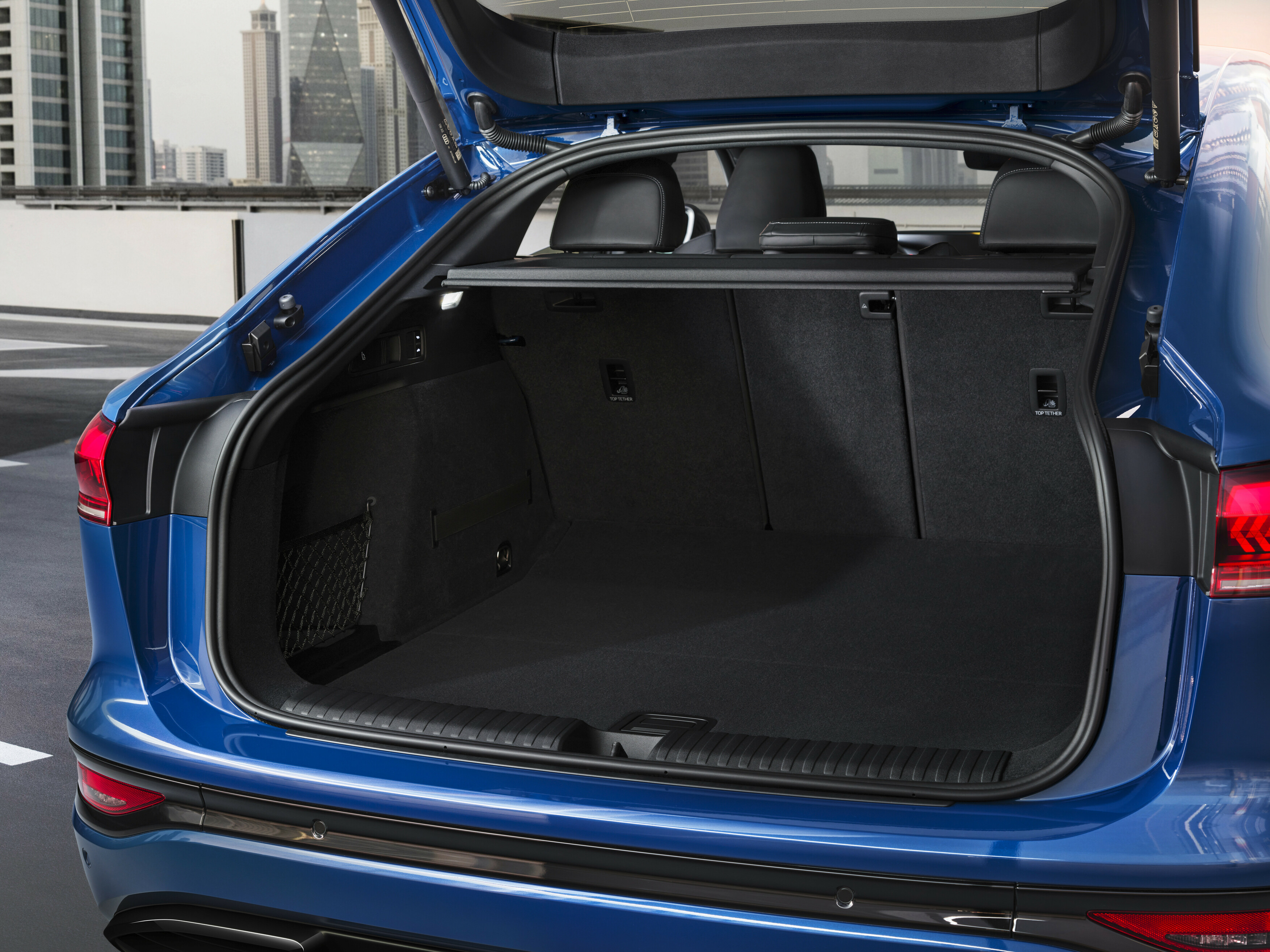 Q6 Sportback e-tron har ett dynamiskt utseende och förenar rymligheten hos en SUV med elegansen hos en coupé. Elbilen har ett bagageutrymme på 511 liter och en frunk på 64 liter. När den bakre sätesraden fälls ökar bagageutrymmet med upp till 1 373 liter. Det långa axelavståndet på 2 899 millimeter ger gott om plats i kupén, även i baksätet, och ger 25 liter extra förvaringsutrymme. Den höga släpvagnsvikten på upp till 2 400 kg i Q6 Sportback e-tron quattro (2 000 kg för övriga versioner) ger användbarhet i vardagen.