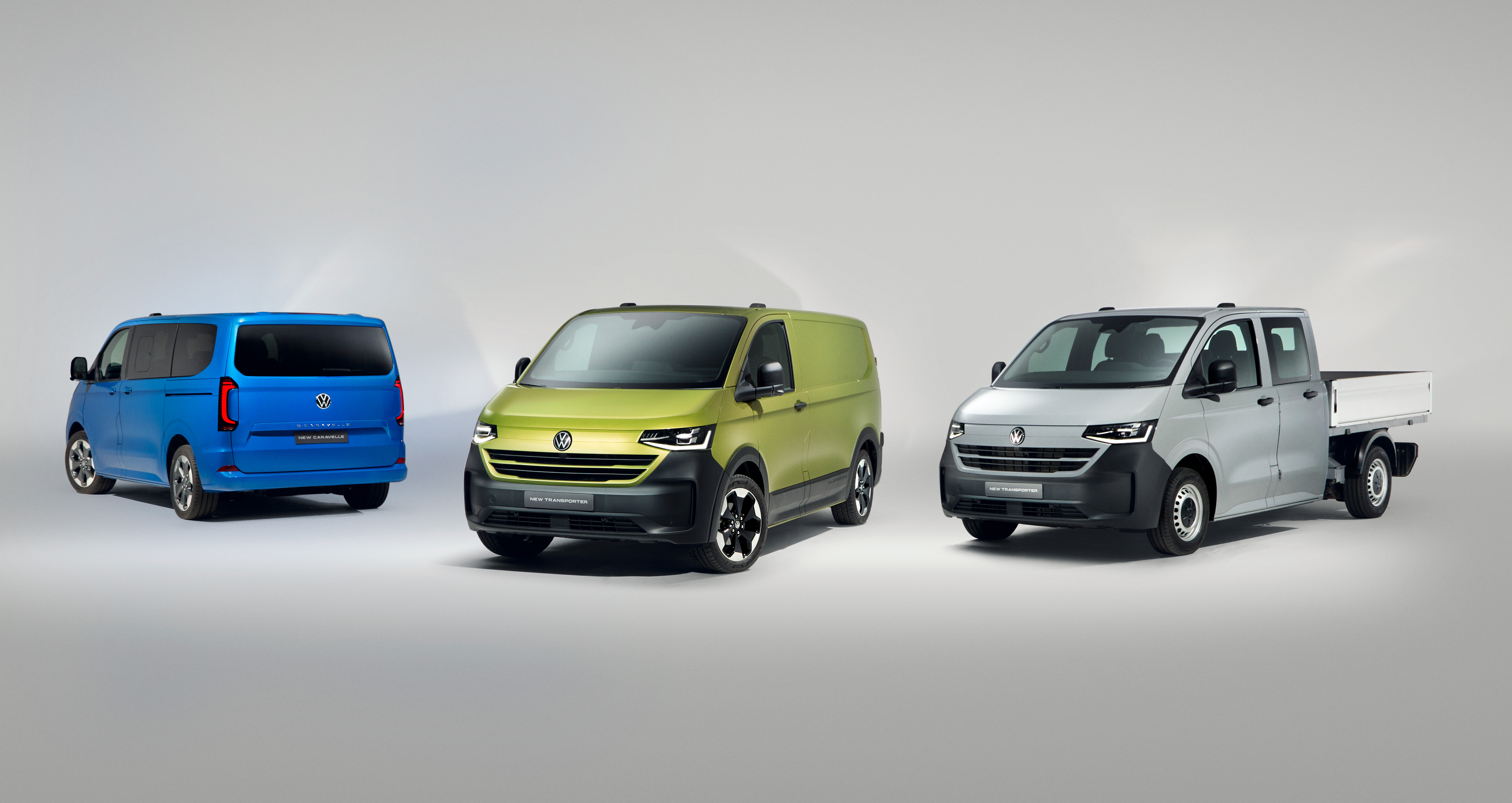 Skåpbil, pickup och Caravelle: Volkswagen Transportbilar erbjuder den nya transportbilen som skåpbil i olika utföranden, två längder och två höjder, samt senare som pickup med dubbelhytt och flak. Samtidigt med nya Transporter lanseras systermodellen Caravelle, en VW-buss konstruerad för professionell persontransport. Caravelle erbjuds även den med två olika hjulbaser och har ett brett användningsomåde som omfattar allt från stora taxibilar med åtta eller nio sittplatser, till exklusiva VIP-bussar och extra stora familjebilar.