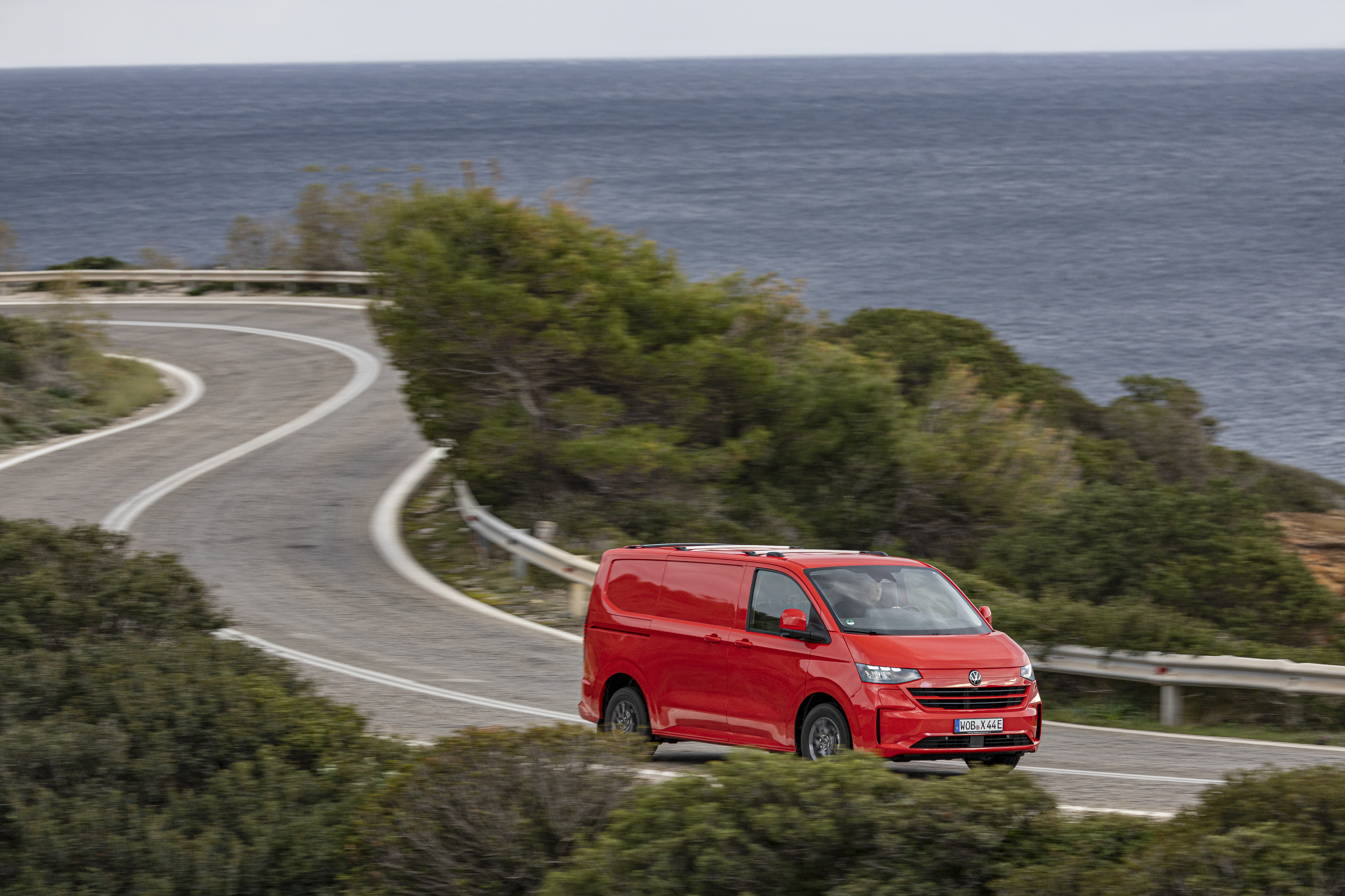 Överlägset chassi, liten vändradie: Den nya chassi- och fjädringskonstruktionen hos Transporter och Caravelle säkerställer optimal komfort och säkerhet. Jämfört med föregångaren märks det särskilt att korta slag som orsakas av dåliga vägförhållanden nu nästan helt filtreras bort. Grunden för den höga komforten och de mycket exakta köregenskaperna utgörs av MacPherson-fjädrar fram med tvärgående krängningshämmare och en utrymmesbesparande individuell hjulupphängning bak med längsgående länkarmar. En främre differentialspärr finns som tillval för Transporter och Caravelle med framhjulsdrift (TDI och eHybrid). Även i stadstrafik och vid manöverkörning imponerar de stora nyttofordonen med sina snäva vändradier: 11,9 meter med kort axelavstånd och 13,0 meter med långt axelavstånd.