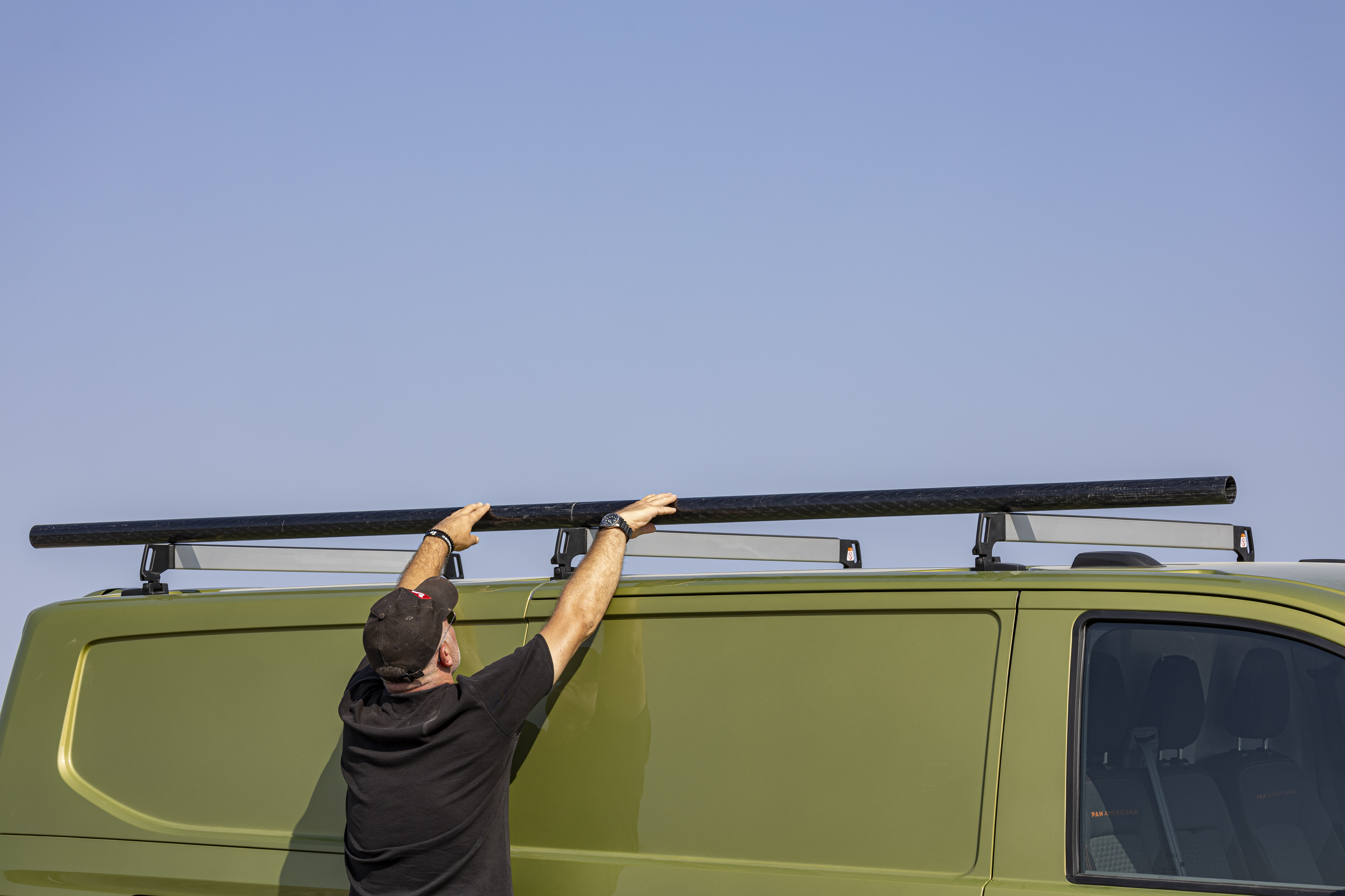 Offroad-utseende med PanAmericana: Utrustningsversionen PanAmericana av transportbilen känns igen direkt på utsidan med sina terrängdesignelement. Till detta hör robusta skärmbreddare och sidokjolsinklädnader. Invändigt finns individuella sätesöverdrag i PanAmericana-design och PanAmericana-inskription i ryggstöden. Den utökade utrustningen omfattar även funktioner som ett åttavägs förarsäte inklusive elektriskt inställbart svankstöd och ett sexvägs passagerarsäte fram (i stället för fyrvägssäten), armstöd för förar- och passagerarsätet fram, sido- och krockgardiner i förarhytten, LED-baklyktor med exklusiv ljussignatur och 17-tums Monte Carlo lättmetallfälgar.