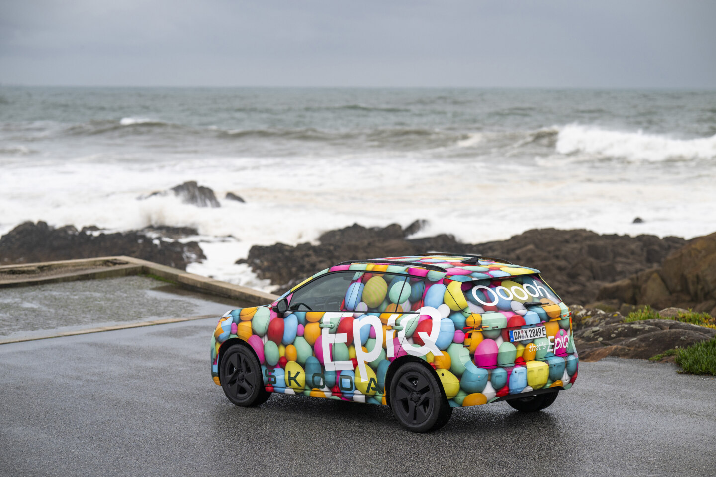 Škoda Epiq är den första produktionsmodellen som fullt ut tillämpar märkets nya Modern Solid-designspråk. Den kreativa kamouflagedesign som bilen bär inför världspremiären ger en tydlig inblick i formspråket, inklusive de aerodynamiska lösningarna med ett lågt luftmotstånd på cx 0,275.