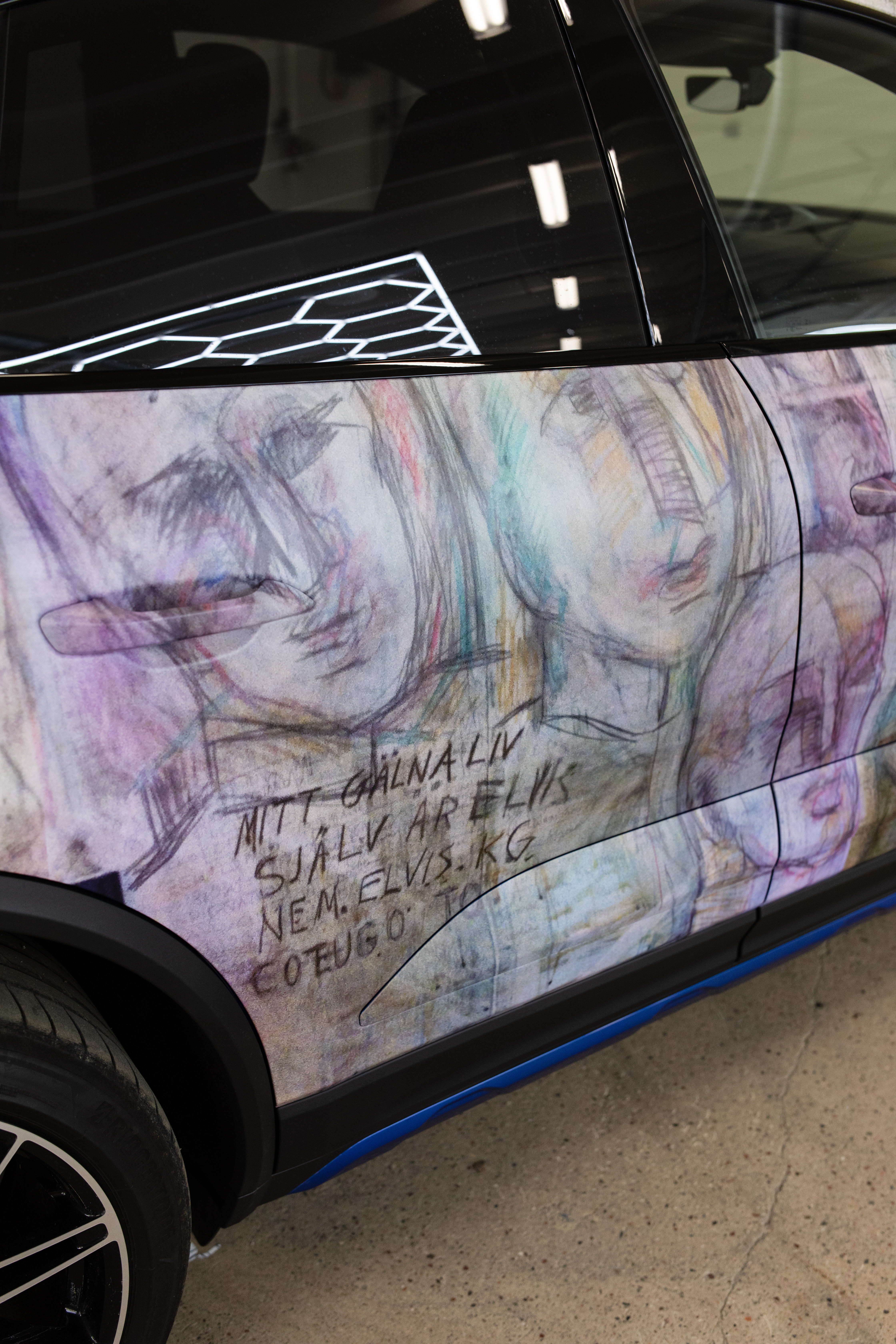 Konstbilen som Anders Krisár skapat för Porsche Sverige och Stockholm Art Week består av en helt elektrisk Porsche Macan som täckts med ett collage av teckningar av hans bortgångne pappa Mårten Havalai – ett djupt personligt projekt som konstnären beskriver som en hyllning till honom. Bilen blir på så vis en rörlig målarduk där teckningarna sträcker sig över karossen och förenar skissande med bilens skulpturala språk. Inne i bilen fortsätter upplevelsen med ett ljudverk komponerat av Krisár och framfört av en av Sveriges ledande pianister, Roland Pöntinen. Den inspelade pianokompositionen förvandlar interiören till en intim lyssningsplats och skapar ett mångbottnat möte mellan ljud, bild och rörelse.