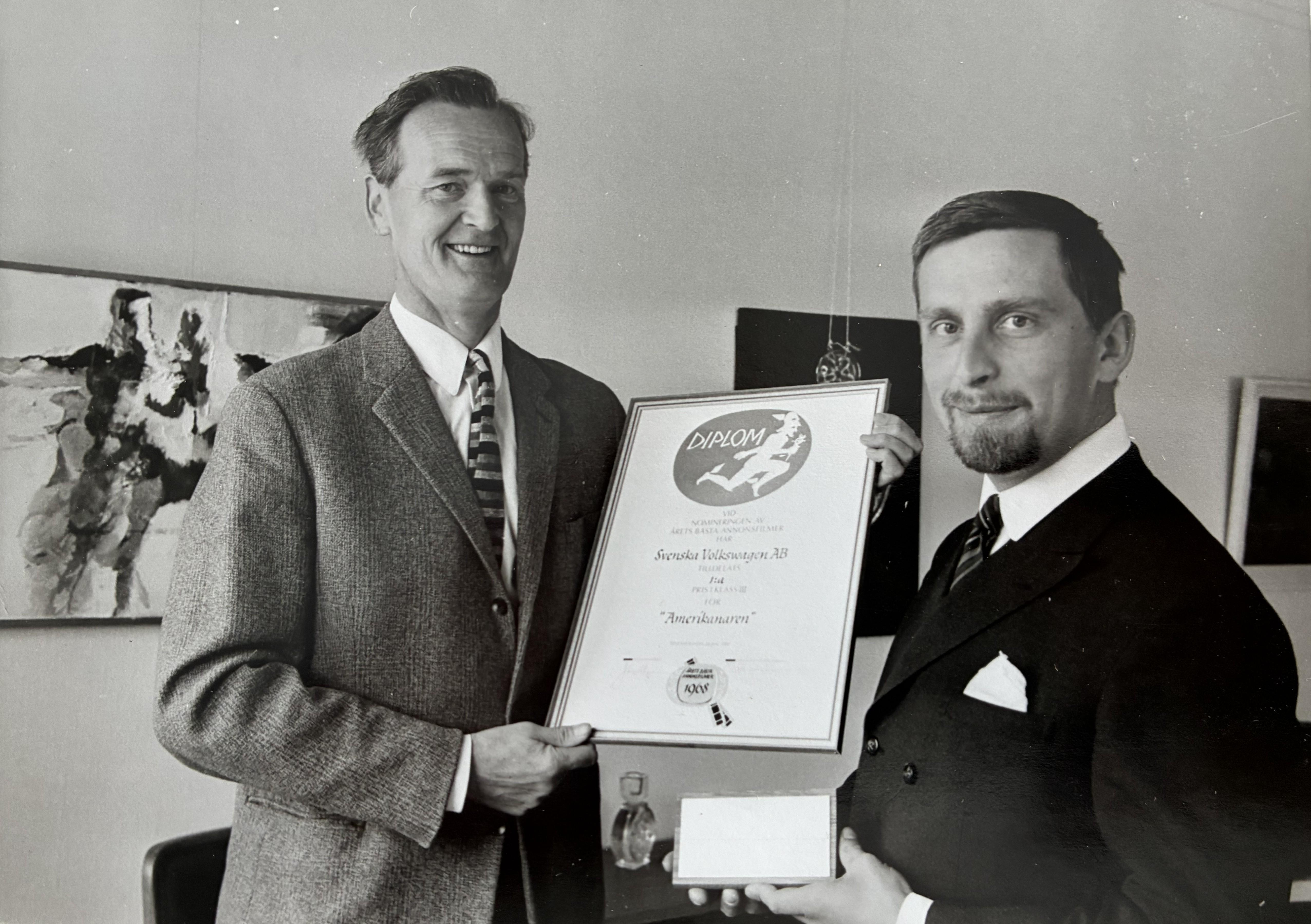 Pris för reklamfilmen Amerikanaren, 1969, PO Zachrisson och Bengt Annerstedt.