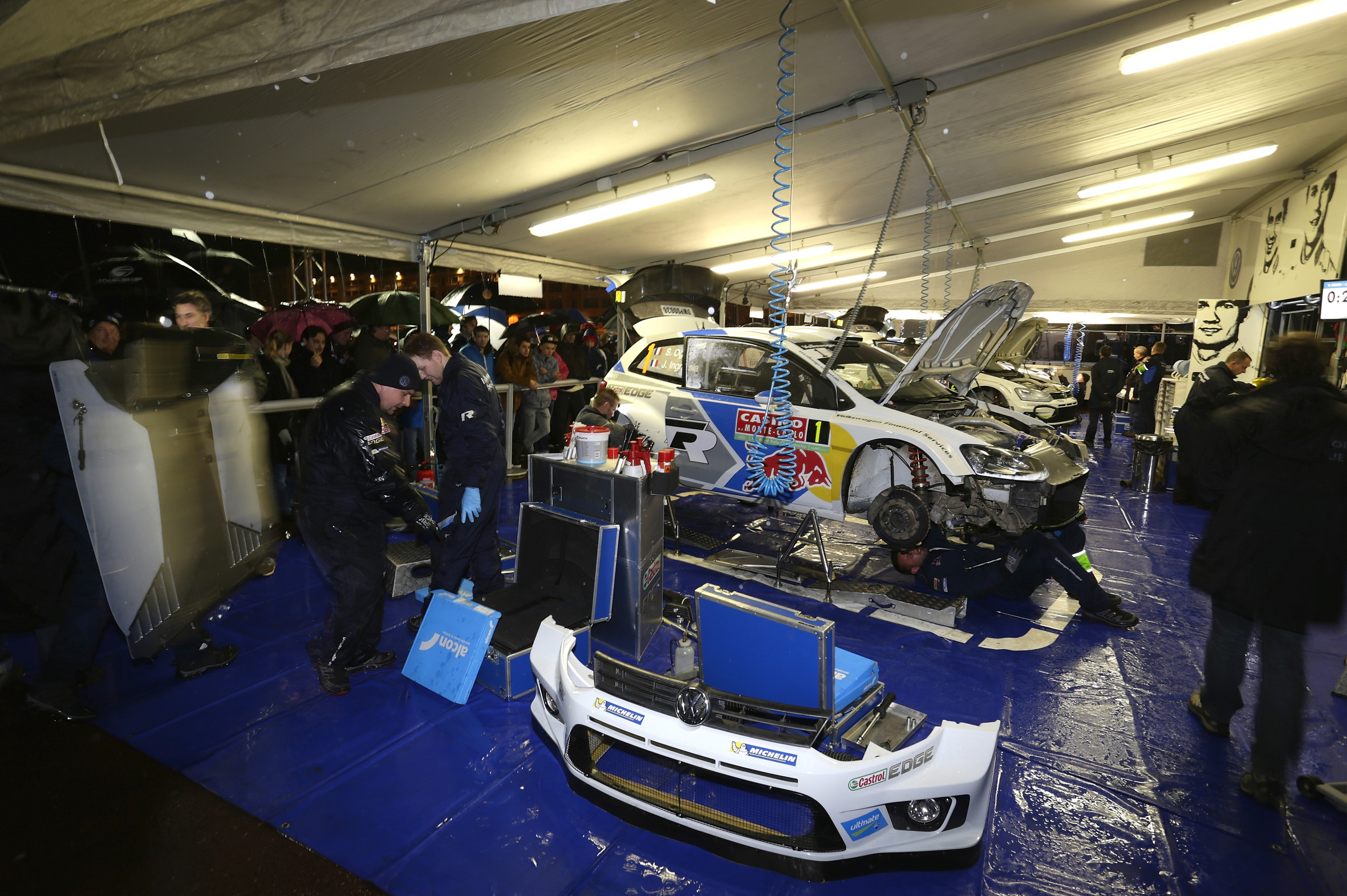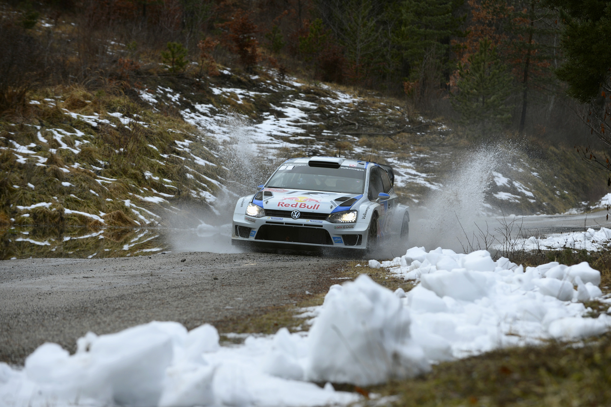 Starten i Monte Carlo-rallyt överrumplade alla med ett plötsligt vinterväder i de franska Alpes Maritimes och kraftiga regn i dalgångarna. Volkswagen hade med väderleksrapportena som grund, valt däck i princip utan mönster, slicks, för de tre inledande specialsträckorna. När snön oväntat började falla blev körningen en verklig utmaning. Sébastien Ogier/Julien Ingrassia och deras team-kamrater förlorade massor av tid under de förhållandena. Världsmästarna befann sig plötsligt på nionde plats.