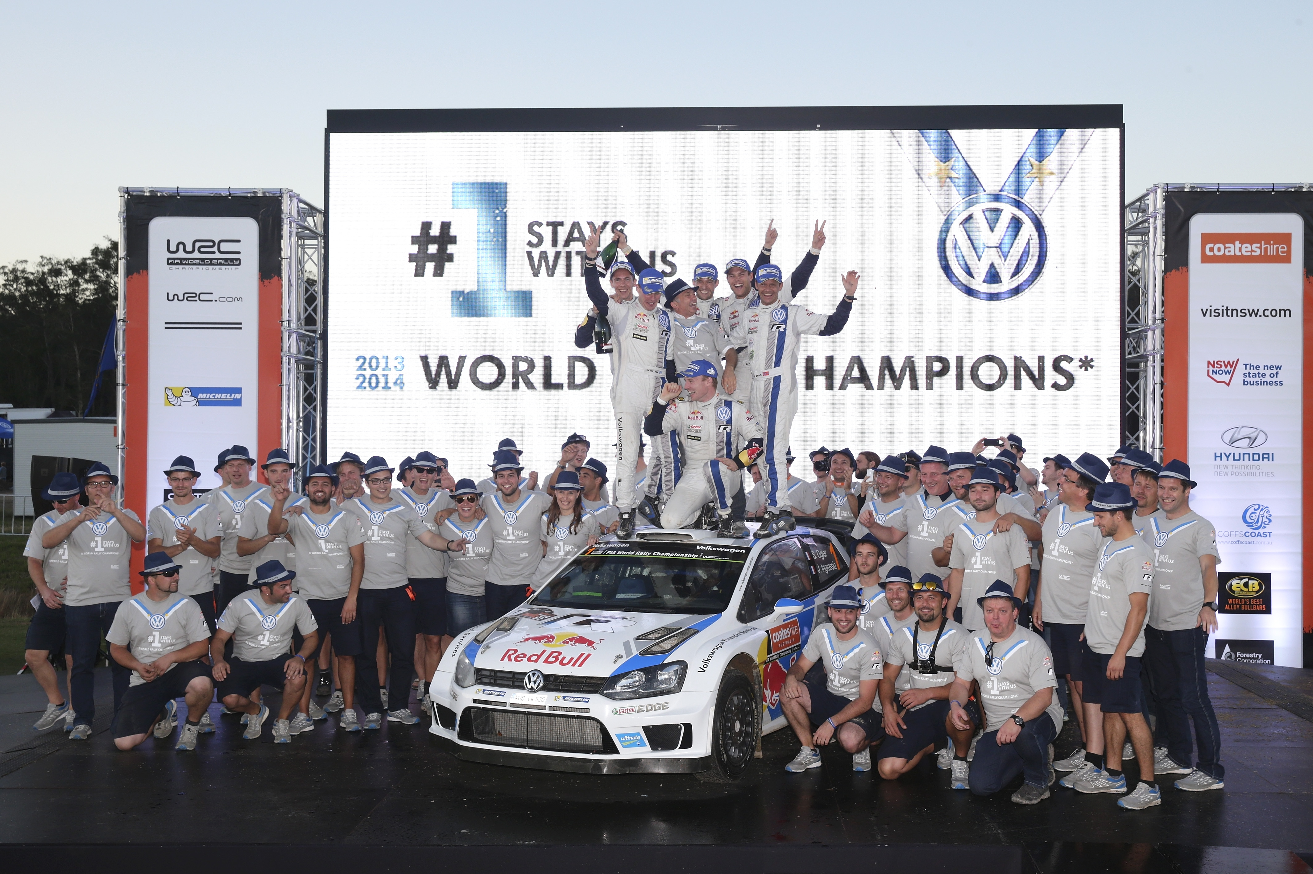 3, 2, 1, Världmästare! Volkswagen tog hem konstruktörstiteln i FIA World Rally Championship (WRC) med en trippelseger i Rally Australia. Med tre rallyn kvar för säsongen kan ingen komma ikapp Volkswagen. Vinnarna i Australien Sébastien Ogier/Julien Ingrassia (F/F) och team-kollegorna Jari-Matti Latvala/Miikka Anttila försvarade framgångsrikt titeln på rekordtid. På 25 år har ingen vunnit VM-titeln så tidigt på säsongen.