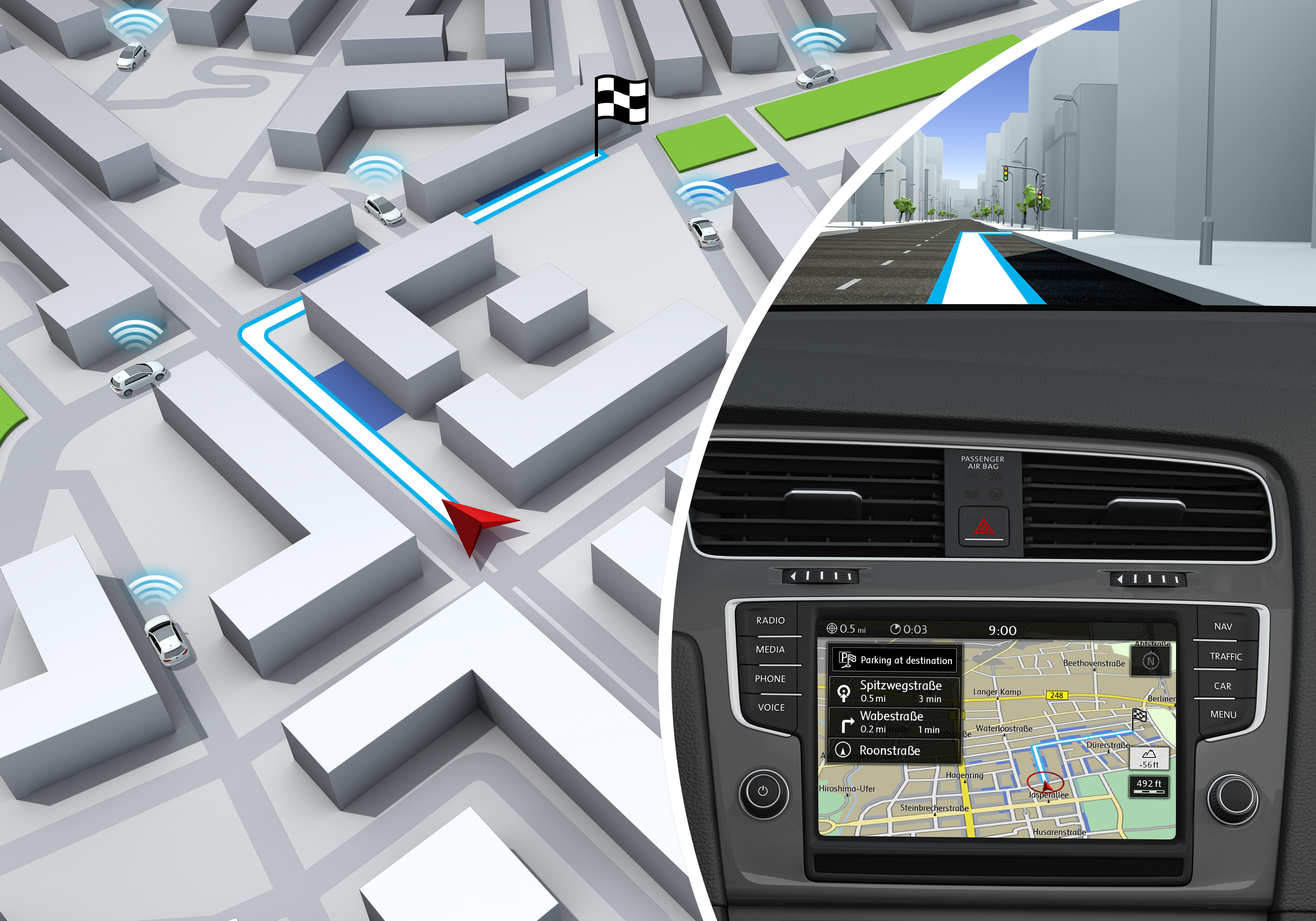 Parking Guide är ytterligare smart navigationsfunktion som hjälper till att hitta parkeringar som sannolikt har gott om lediga parkeringsplatser.