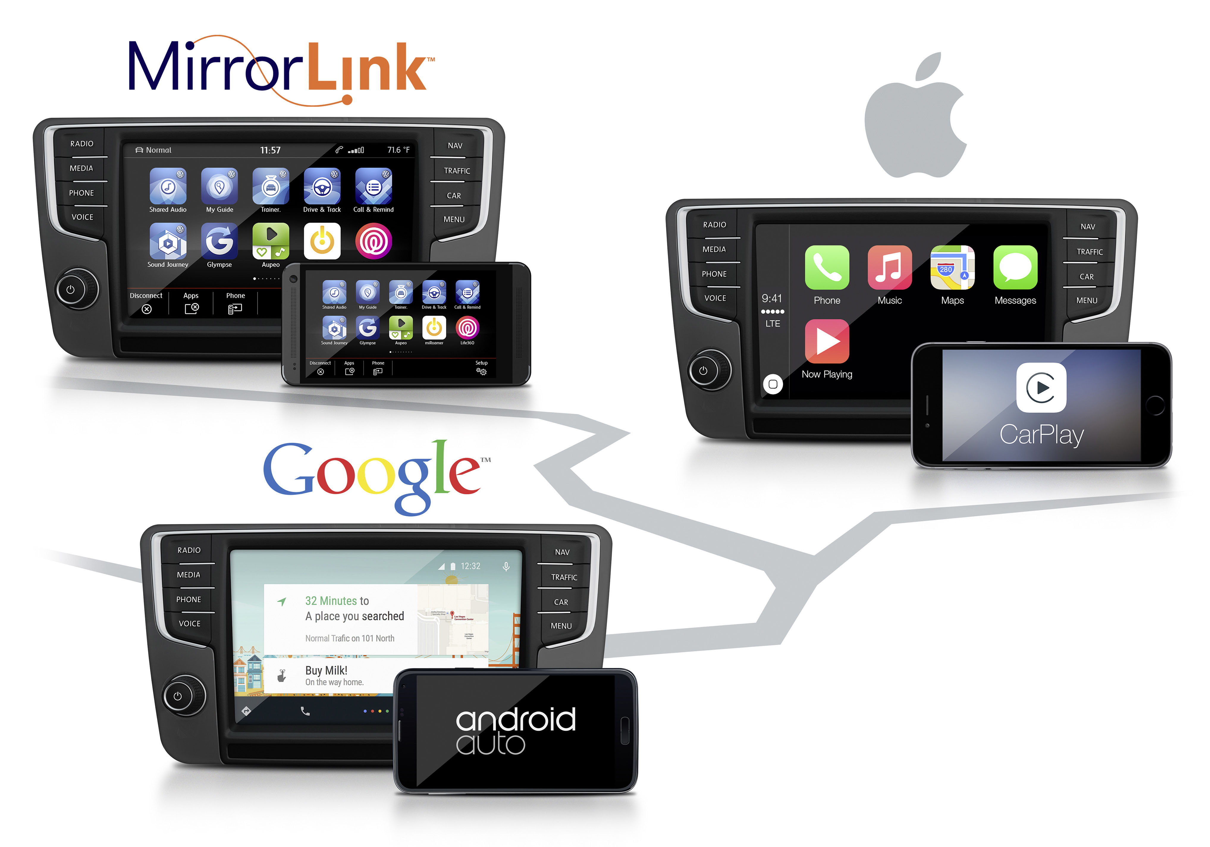 3. Volkswagen kommer att lansera App Connect med MirrorLink, CarPlay (Apple) och Android Auto (Google) i bilar under 2015.