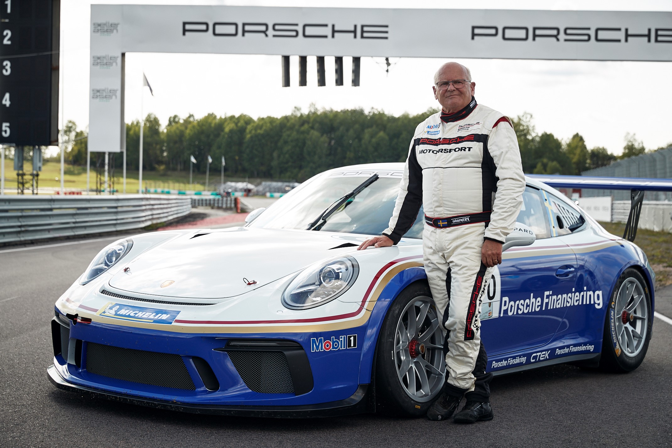 – Gelleråsen är min hemmabana. Det var här jag tog min förarlicens 1964 och det har ju blivit några varv sedan dess. Så att hitta runt ska jag nog klara av och 911 GT3 Cup är skitskoj att köra! Principen är densamma som den 911 jag brukar åka med i historiska rallyn. Man får handskas med den på samma sätt, avslutar Stig.