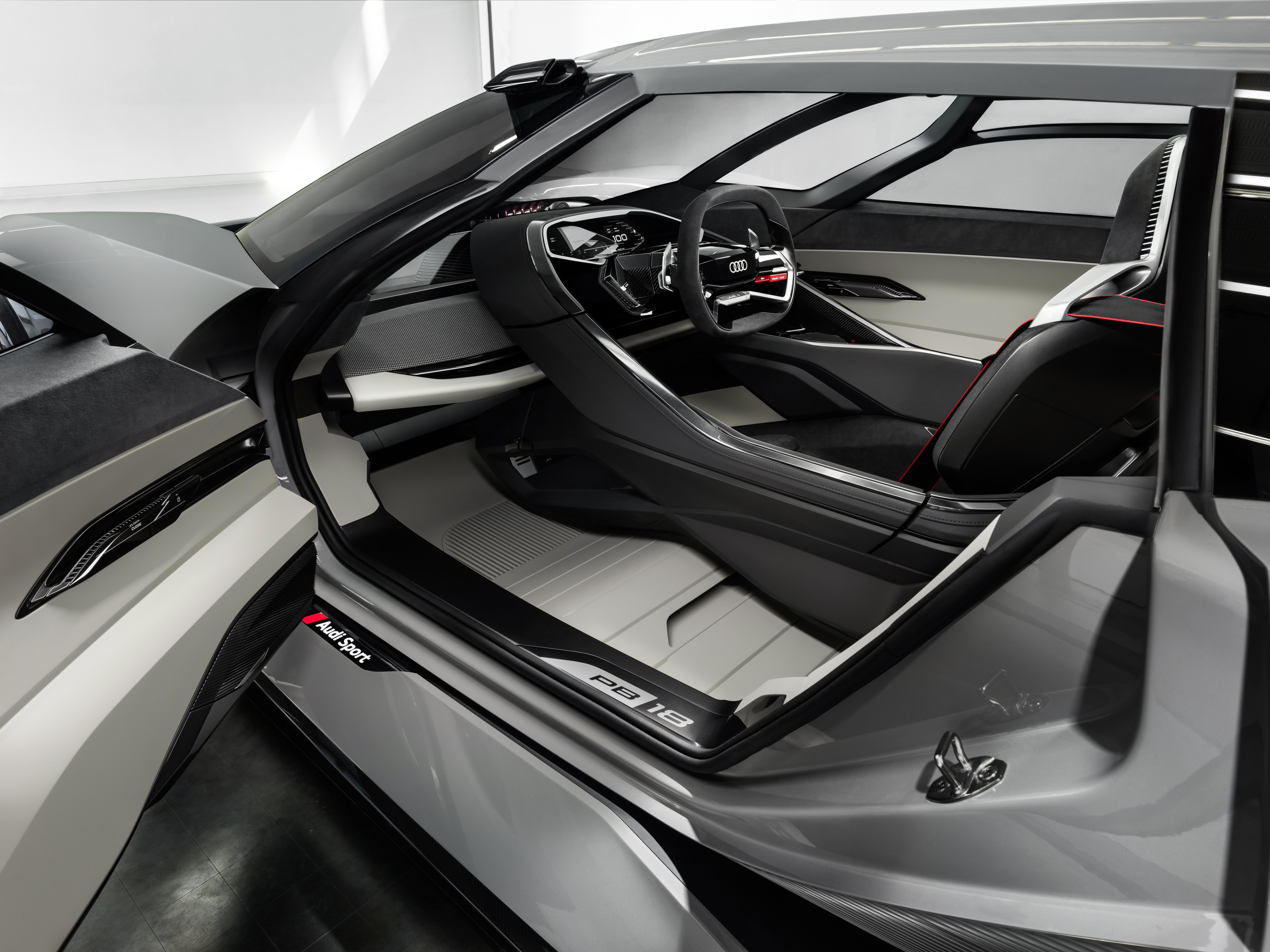 Audi PB18 e-tron följer den traditionella arkitekturen i en mittmotoriserad sportbil med långt framskjuten kabin. Bilens tyngdpunkt är, till fördel för kördynamiken, placerad bakom sätena och framför bakaxeln. Och då handlar det inte om motor och transmission som i en konventionell bil, utan om ett batteripaket. En mix av aluminium, kolfiber och multi-material-kompositer borgar för en låg karossvikt. Inte minst tack vare det innovativa och jämförelsevis lätta solid-state batteriet räknar man med en totalvikt på mindre än 1,550 kg.