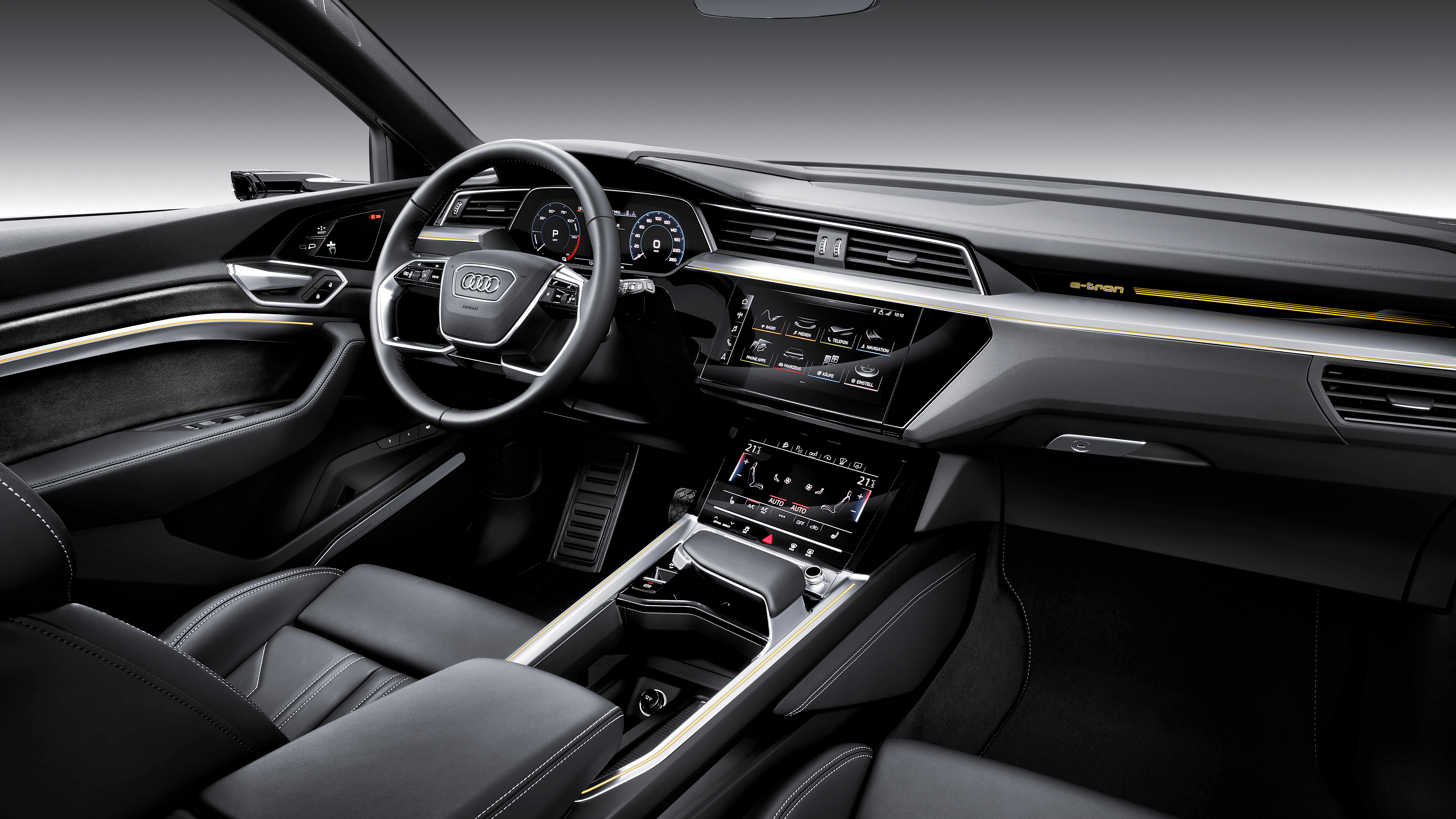 Audi e-tron är uppkopplad mot sin omgivning, bl.a. genom navigationen som visar den lämpligaste vägen till de laddpunkter som krävs, automatisk fakturering vid laddstationerna och fjärrstyrning via mobilen. Audi e-tron är också standardutrustad med det avancerade mediacentret MMI navigation plus med LTE Advanced och Wi-Fi hotspot. En rad assistanssystem underlättar för föraren och gör resan säkrare. Effektivitetsassistenten uppmanar t.ex. till en mer ekonomisk körning genom att den läser av trafiken i förväg och automatiskt återvinner energi. Om kunden väljer den adaptiva farthållaren kan systemet även bromsa och accelerera elbilen prediktivt.