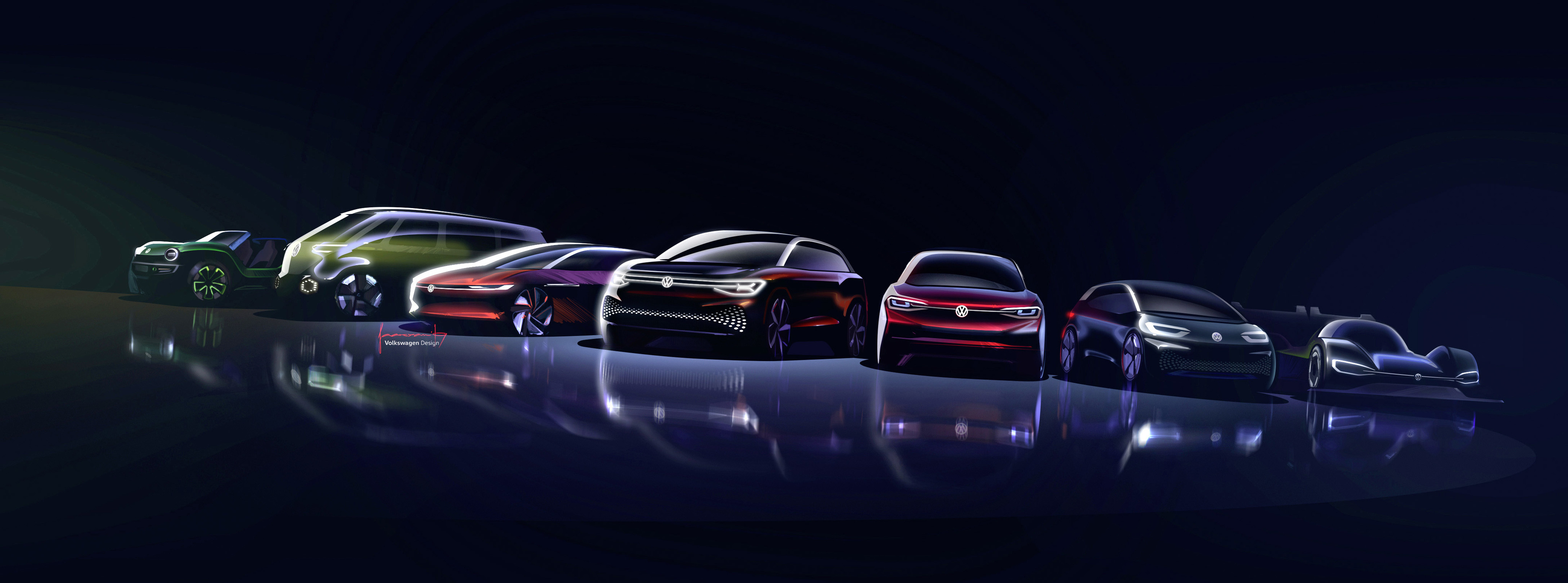 Hittills har sex konceptbilar presenterats: ID. (kompaktklassen), ID. BUZZ (minibuss), ID. CROZZ (SUV), ID. VIZZION (sedan), ID. BUGGY (beach buggy) och ID. ROOMZZ (SUV).
