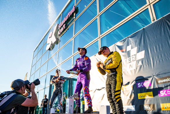 -Jag är superglad, både för egen del och för Robbans skull. Att få dela pallen med honom på hans hemmaplan känns fantastiskt! Jag är nöjd med mina två race, från P6 till P4 i första och ända upp till andraplats i andra heatet. Stort tack till hela teamet som verkligen har levererat den här helgen, uttrycker Mikaela Kottulinsky.