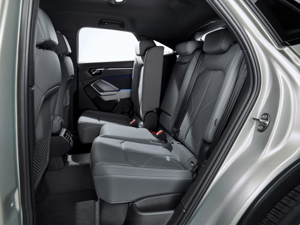 Audi Q3 Sportback är 4,50 m lång, 1,84 m bred och 1,56 meter hög med en hjulbas som mäter 2,68 meter. Det ger förutsättningar för en rymlig och flexibel interiör. Baksätet kan skjutas 130 mm i längsled som standard och ryggstöden är delbara 40:20:40 med ställbar lutning i sju steg. Bagageutrymmet lastar från 530 till 1,400 liter och lastgolvet kan justeras i två nivåer med möjlighet att placera hatthyllan därunder. Som standard ingår sportstolar med elektriskt svankstöd och elbaklucka, som mot tillval kan öppnas och stängas med en fotrörelse. För att förstärka den progressiva designfilosofin erbjuds även Alcantara-beklädda ytor på instrumentpanel och armstöd samt ljuspaket med möjlighet att ställa in 30 olika nyanser.