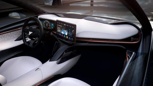 De skålade, läderklädda 3D-stolarna erbjuder såväl form och funktion som komfort och säkerhet medan den vingformade instrumentpanelen, som ser ut att sväva fritt, förstärker intrycket av rymd. På förarplats levererar en digital 12,3"-instrumentskärm all nödvändig information, infotainmentsystemet har en 13"-display.