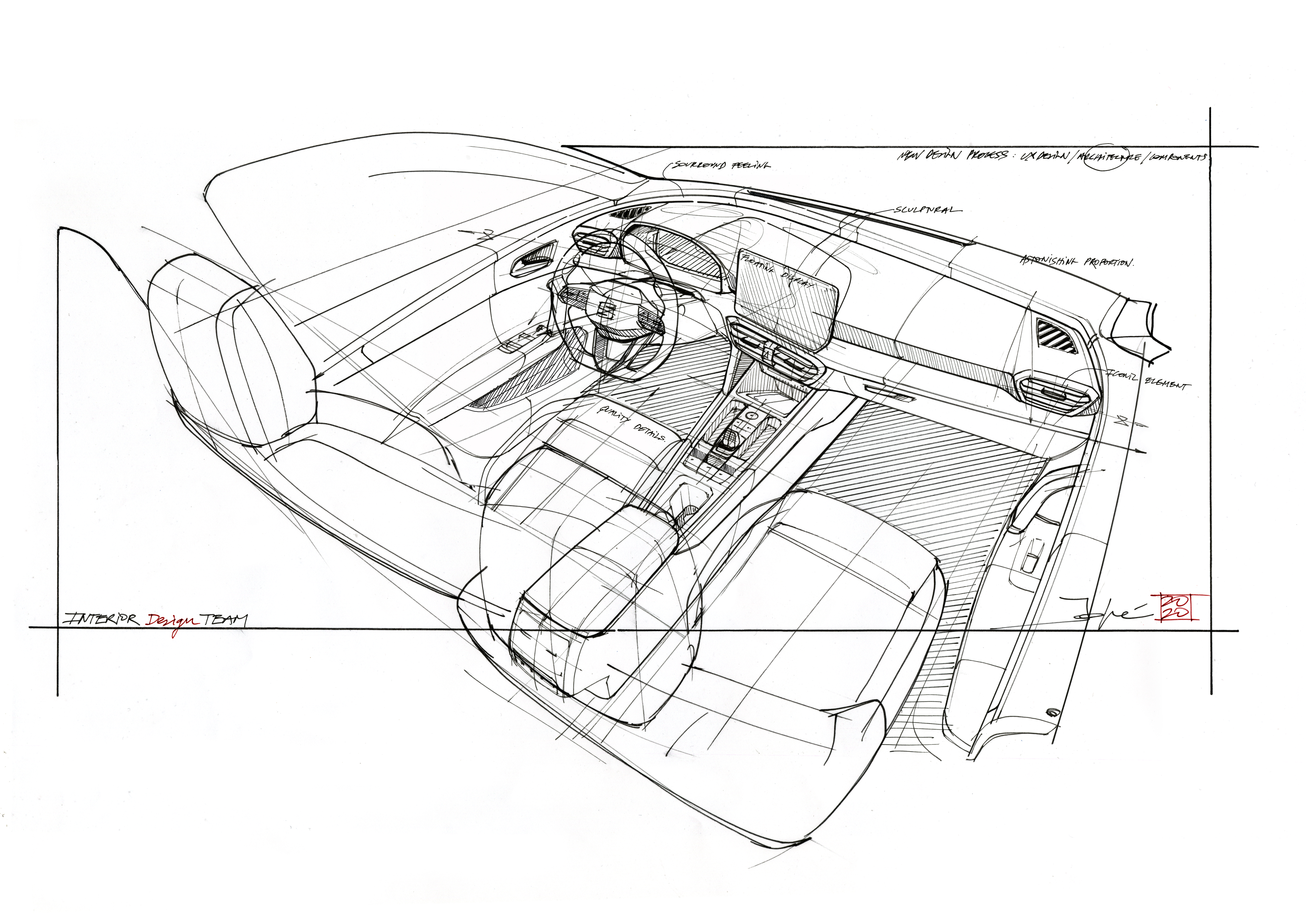 En digital revolution. Den centralt belägna 10-tums infotainmentskärmen är huvudattraktionen i interiören, med gestkontroll som ökar användarvänligheten betydligt. ”Skärmens dominerande och upphöjda position förbättrar förarens upplevelse av att enkelt kunna kontrollera bilen vare sig man justerar multimedia, klimatkontroll eller körassistenter.” säger Jaume. En annan fördel är att man sänkt instrumentbrädan och därmed ökat synligheten för skärmen.