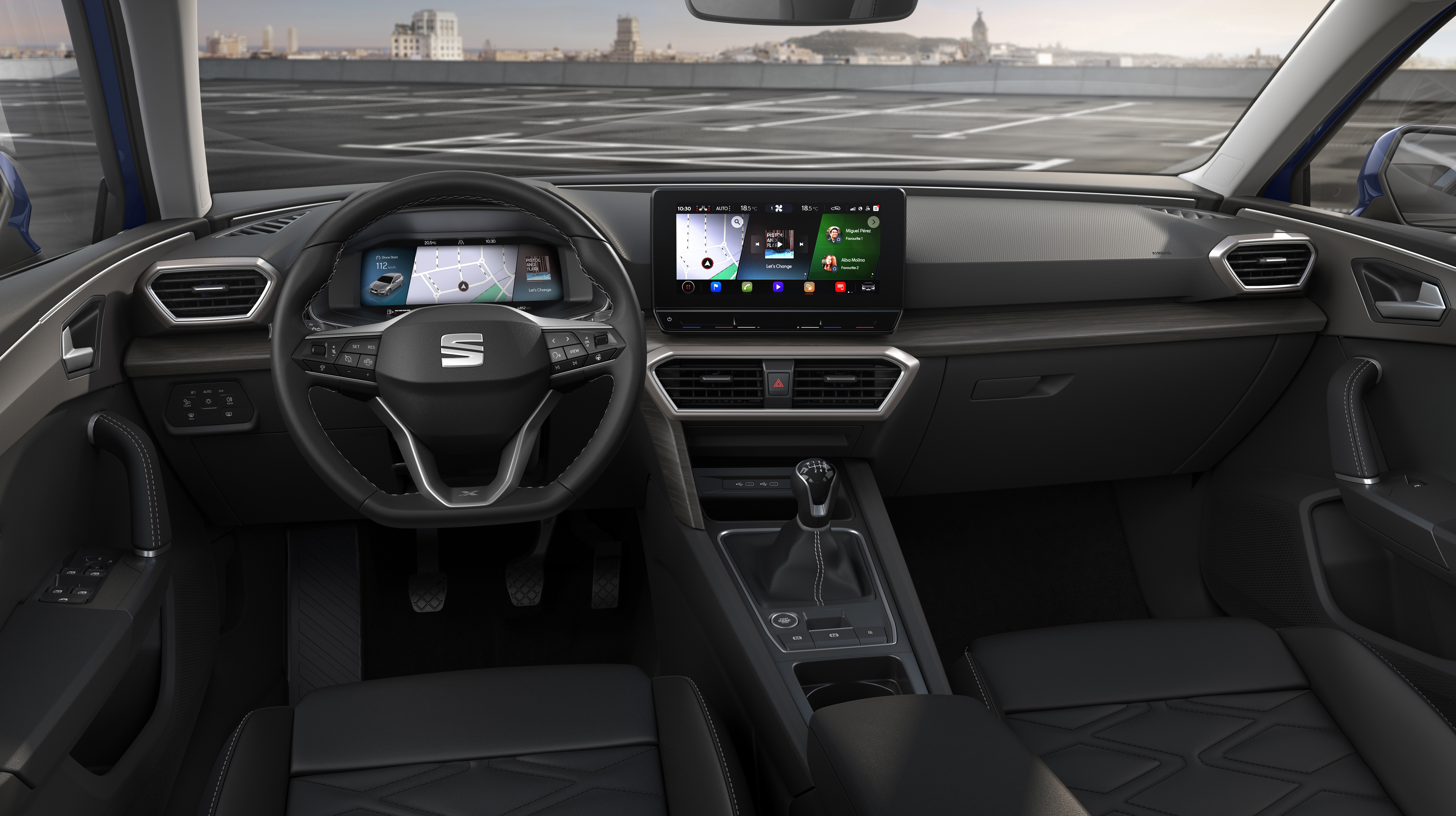 Designens mittpunkt. ”När man kliver in i nya Leon, omsluts både förare och passagerare av känslan att befinna sig i kupéns mittpunkt.” säger SEATs interiörarkitekt David Jofré. Det var ett av designteamets huvudmål. I nya Leon är syftet att alla passagerare ska finna sig väl tillrätta och känna sig som hemma. ”Vi introducerade nya designfunktioner på instrumentbrädan och dörrarna för att skapa en omslutande effekt. Känslan skapas av de dekorativa lister som omger instrumentpanelen och fortsätter längs med dörrarna.” förklarar David.