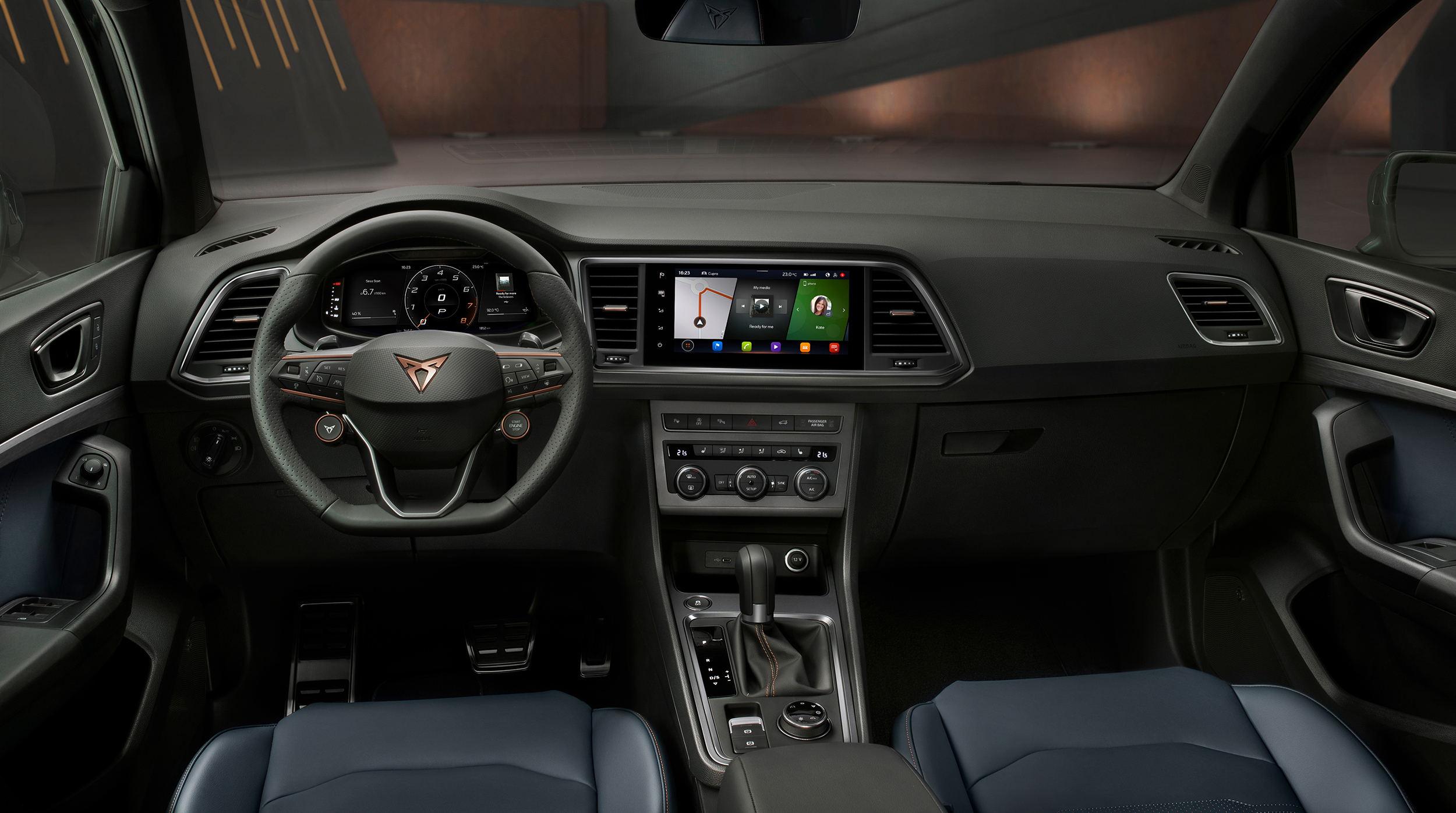 Och i takt med att världen blir allt mer digitaliserad, erbjuder CUPRA Ateca uppkoppling på en nivå som gör det möjligt att hålla sig uppdaterad vart man än styr kosan, med tillgång både till sin mobila enhet i kupén som till speciella online-tjänster för bilen. Den är helt enkelt en knutpunkt mellan vägen och omvärlden.