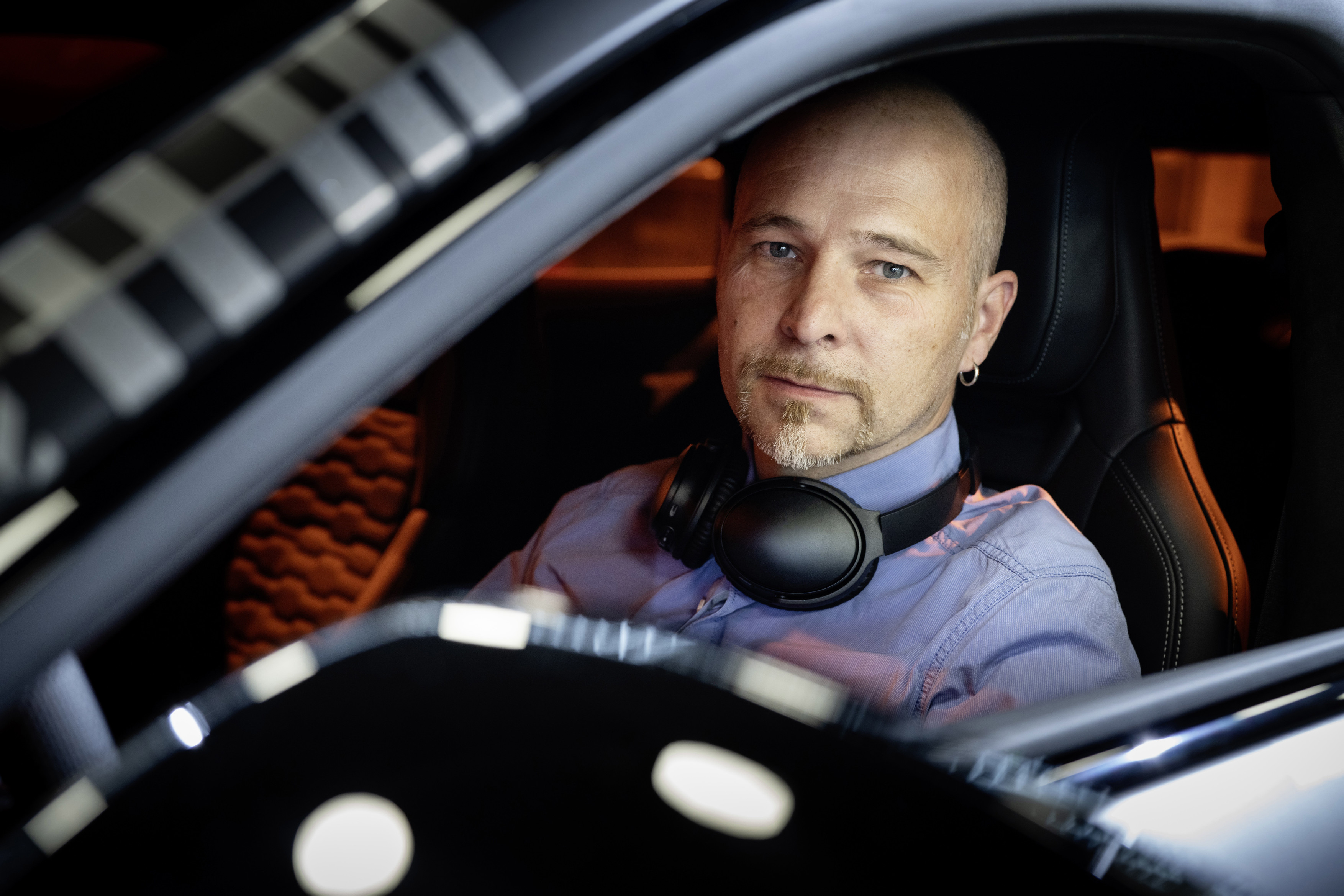 ”Rent principiellt har bilens ljud en hel del gemensamt med musik”, säger Rudolf Halbmeir. Han arbetar som ljuddesigner på Audi och är en hängiven musiker som på fritiden skriver egna låtar och själv spelar alla instrument i sin privata inspelningsstudio. Halbmeir berättar: ”För att hitta grundljudet för e-tron GT, testade jag först med alla möjliga sorters instrument – från fiol och elgitarr hela vägen till en didgeridoo, ett blåsinstrument från Australien. Men inget av dem fungerade riktigt bra. Sen hittade jag ett rör i trädgården, det var 3 meter långt och mätte 80 mm i diameter. Jag satte dit en fläkt i ena änden och lyssnade på det ljud som kom ut i den andra. Det var ett väldigt speciellt ljud, som ett djupt morrande – och jag förstod direkt att jag hittat ett ljud jag kunde utgå ifrån.”