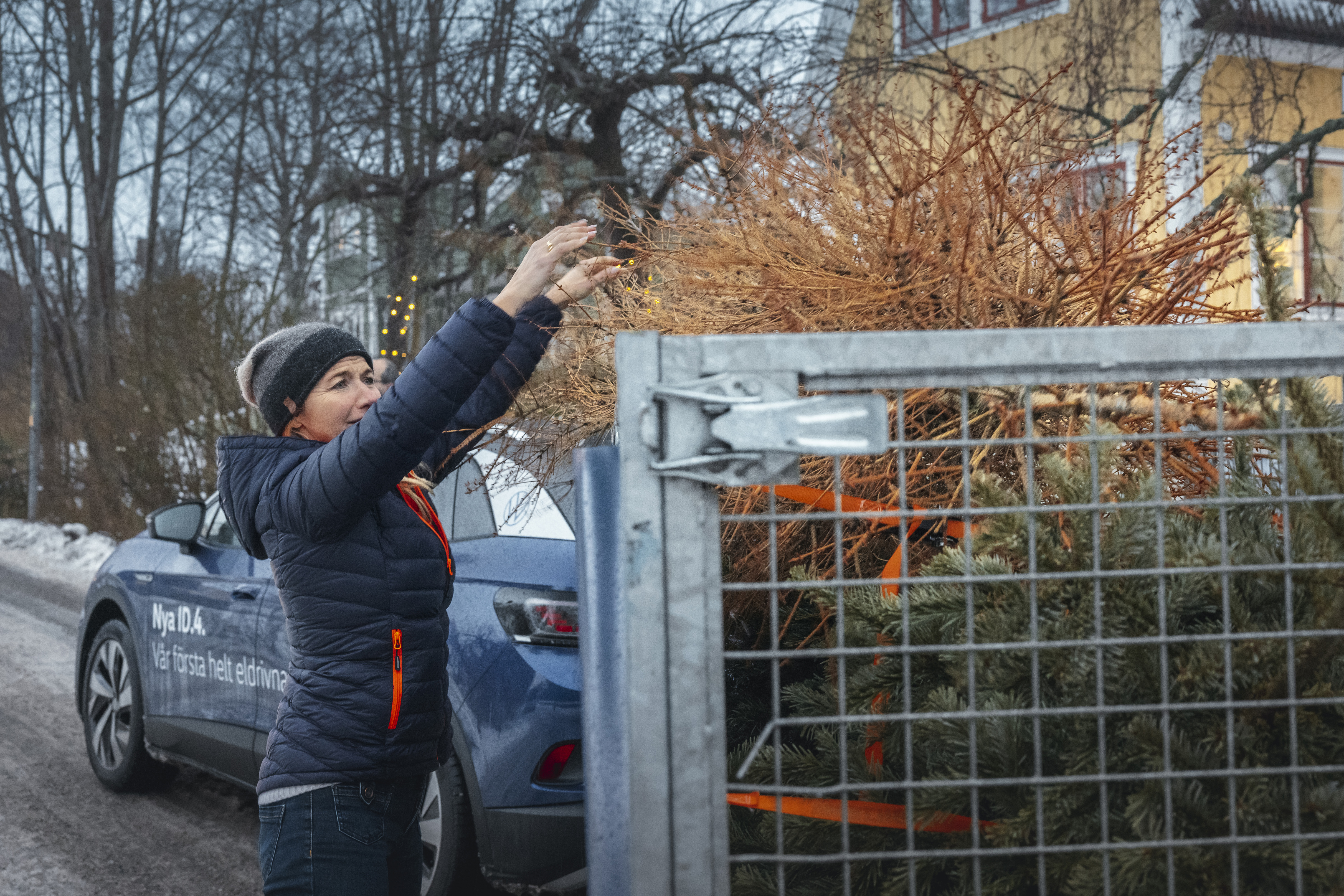 Volkswagen kopplade en släpvagn på sin nya elbil ID.4 och hjälpte hushåll i Storstockholm att återvinna sina julgranar. Granarna omvandlades till el motsvarande knappt 150 mils körning med en ID.4. Om alla Sveriges 3,2 miljoner julgranar skulle återvinnas räcker det till att köra knappt 3 400 varv runt jorden.