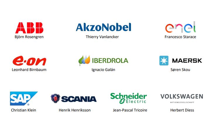 De tio företagsledarna Björn Rosengren (ABB), Thierry Vanlancker (AkzoNobel), Francesco Starace (ENEL), Leonhard Birnbaum (E.ON), Ignacio Galán (Iberdrola), Søren Skou (Maersk), Christian Klein (SAP), Henrik Henriksson (Scania), Jean-Pascale Tricoire (Schneider Electric) och Herbert Diess (Volkswagen AG) är medlemmar i "CEO Alliance for Europe's Recovery, Reform and Resilience".