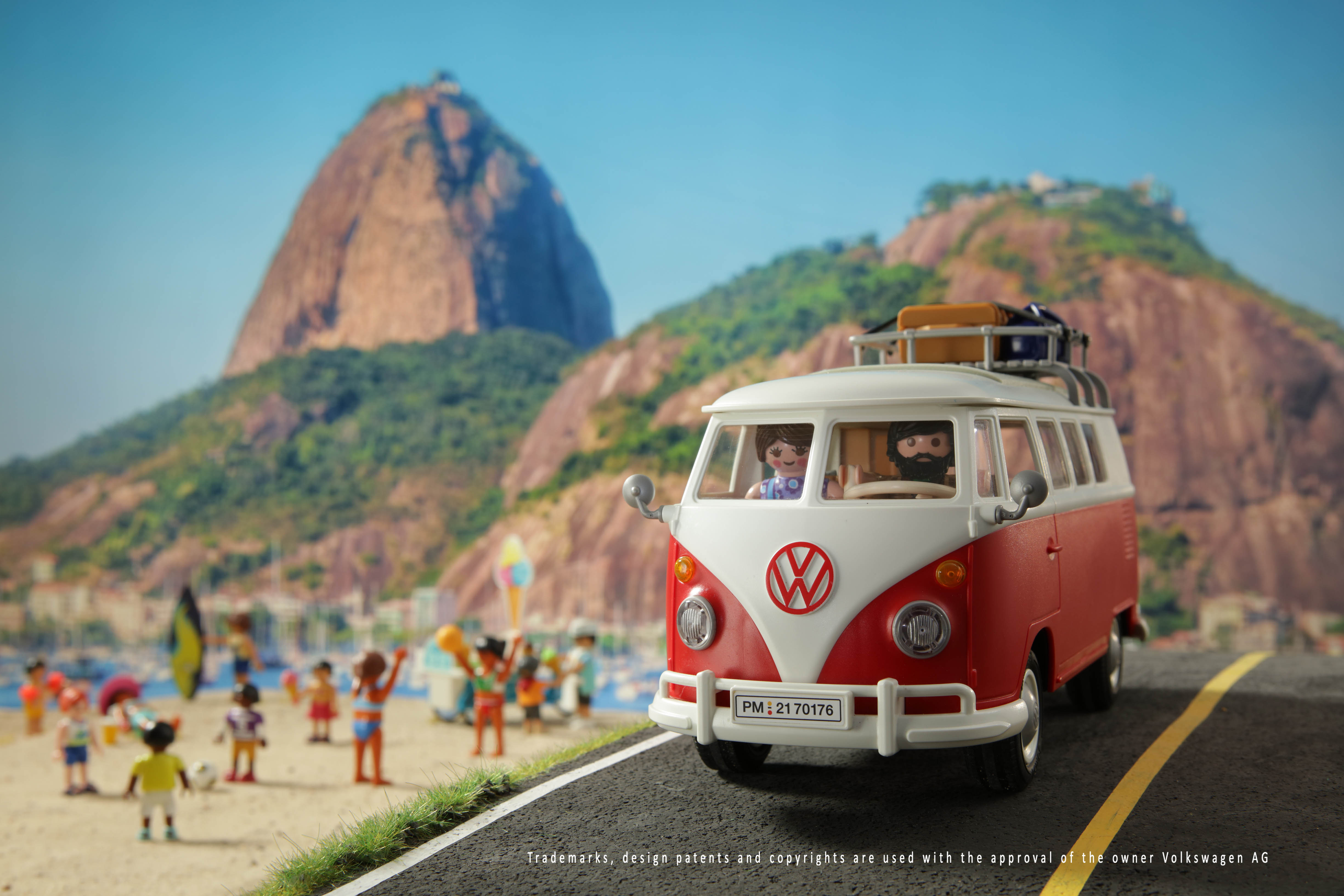 PLAYMOBIL ger den kort och gott namnet: Volkswagen T1 Camping Bus. Gamla som unga fans kommer att älska denna ”Playmo Folkabuss”. Det senaste på leksaksmarknaden är en detaljrik campervan i beigegrått och rött som den tyska leksakstillverkaren tagit fram i samarbete med Volkswagen Transportbilar. Modellen är baserad på ett riktigt fordon ”Henrik the Red”, en T1:a från 1962 som finns i Volkswagen Transportbilars samling av gamla modeller. I leksaksbilen kan man fälla säten och skåpen går att öppna. Det finns till och med mat och annan campingutrustning i bilen. Öppnar man motorluckan i bak så visar sig den klassiska 4-cylindriga boxermotorn.