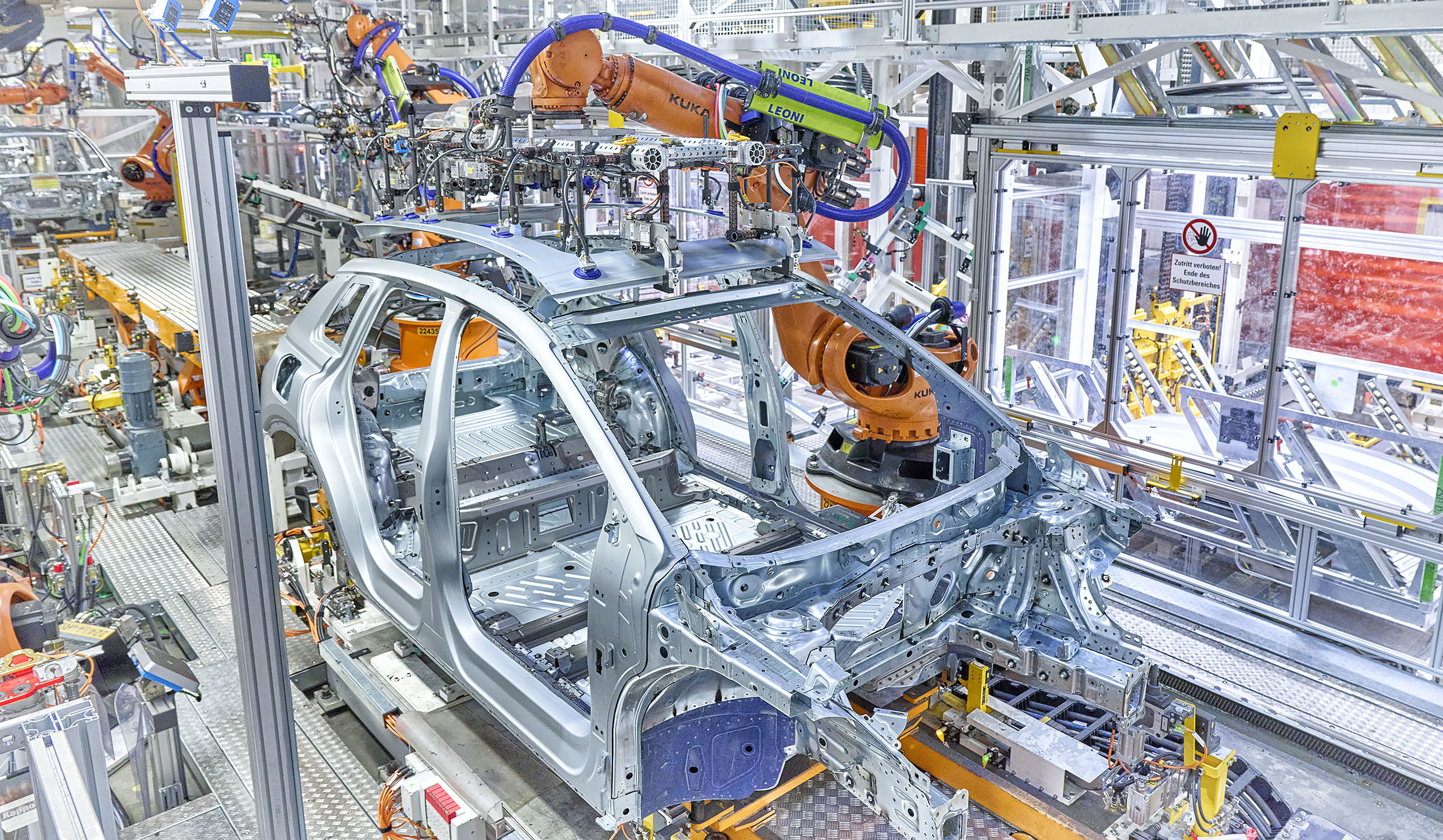 Vid flermärkesanläggningen i Zwickau kommer Audi Q4 e-tron rulla av samma produktionslina som Volkswagen ID.4. Här tillverkas den kompakta elbilen som, tack vare MEB-arkitekturen, erbjuder utrymmen som i en betydligt större bil. Vid sidan av sina kollegor från Volkswagen har över hundra Audi-experter förberett produktionsstarten – alltifrån produktionsplanering till kvalitetssäkring och teknisk utveckling. Pressverktygen för att tillverka karossdelar kommer från Audis egen verktygstillverkning. Med sin uttrycksfulla design bjuder Audi Q4 e-tron på stora utmaningar när det kommer till precision och perfektion i karossen. Audis verktygsmakare från Ingolstadt och Neckarsulm var därför involverade redan från de första utvecklingsstegen. Processen för att testa pressverktygen, som väger många ton, genomfördes även i Audis egna anläggningar.