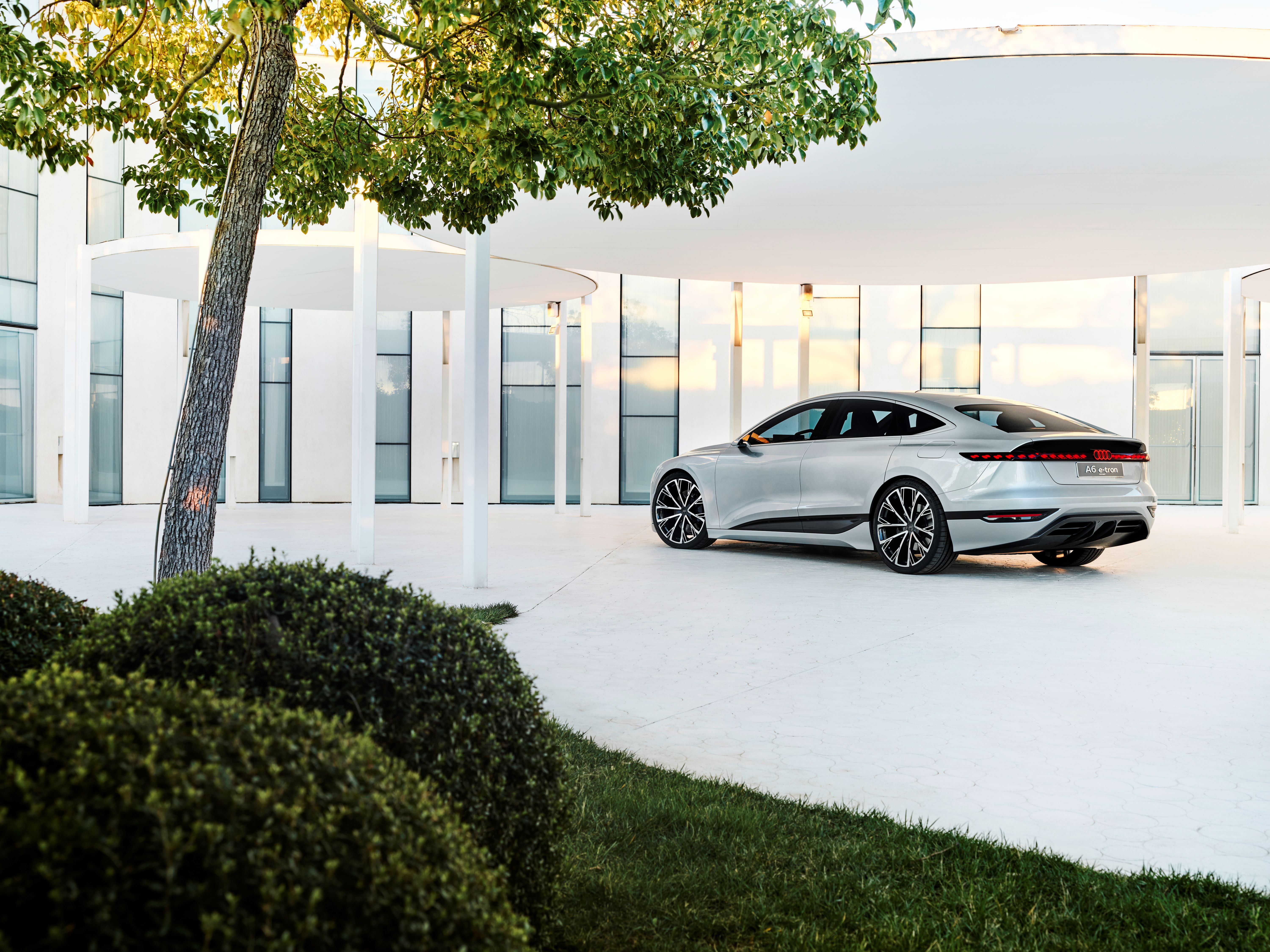 Till skillnad från dessa är Audi A6 e-tron concept helt eldriven och baseras på PPE-plattformen som utvecklats under Audis ledarskap. Samtidigt representerar den ett helt nytt designkoncept där den enda gemensamma nämnaren med nuvarande A6 är dimensionerna. Karossen som är 4,96-meter lång, 1,96 meter bred och 1,44-meter hög är designad som en Sportback, vars linjer är en konsekvent vidareutveckling av Audis nuvarande formspråk.