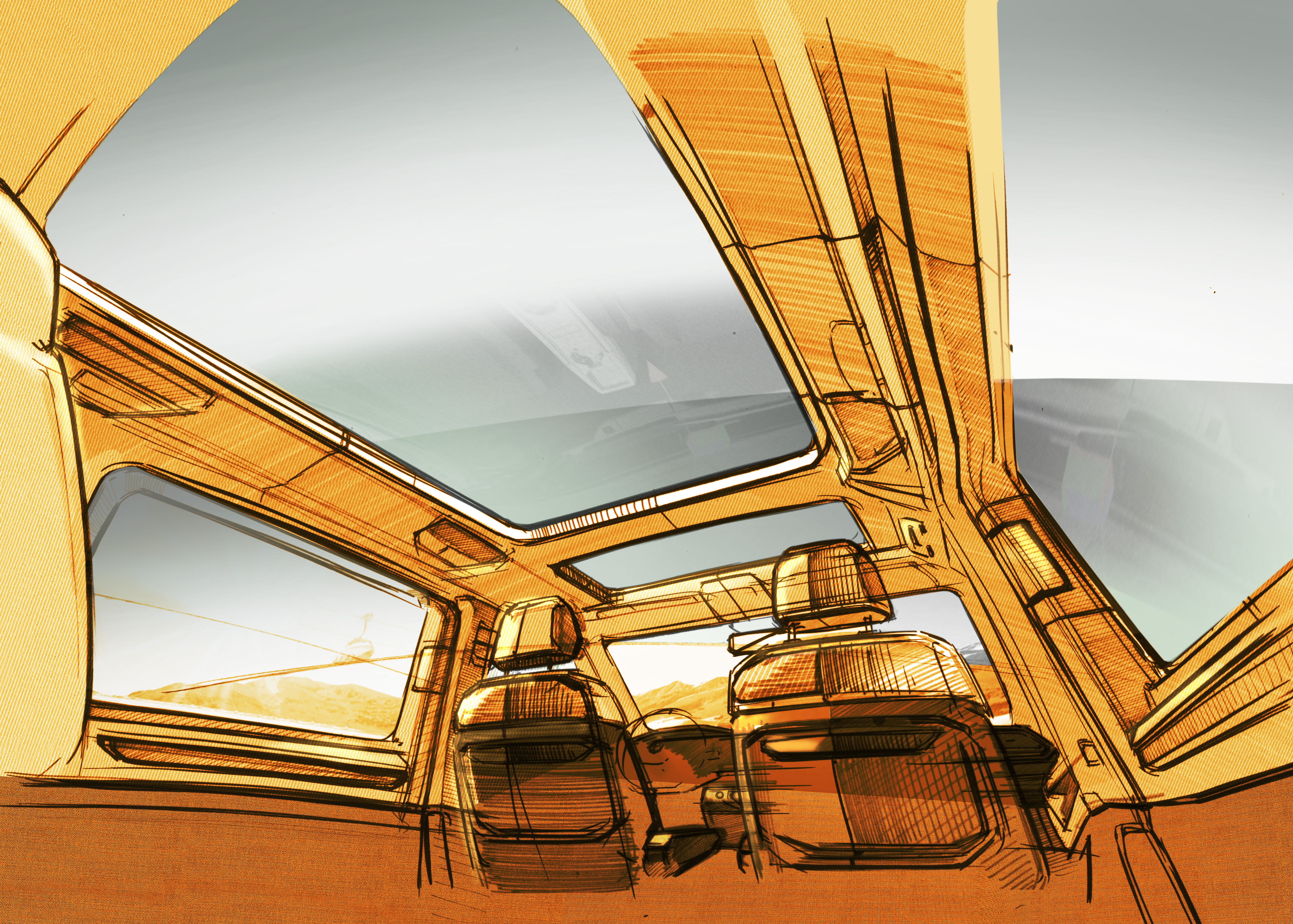 Det vinnande konceptet med 180 graders snurrbara fåtöljer på andra raden fanns redan på första generationen Multivan och lever vidare i nästa generation. Detta ger möjlighet till en social miljö för alla baksätespassagerare där effektiva möten kan avklaras under färd eller där barnen kan roa sig själva under långa semesterresor. I nya Multivan har soffan i tredje raden ersatts av tre separat fåtöljer som lätt kan möbleras om genom det nya systemet av glidskenor som sträcker sig bakifrån och hela vägen fram till andra sätesraden. Genom att dessutom göra stolarna lättare blir det enkelt att plocka ur dem och till exempel göra plats för långa föremål på en sida och samtidigt behålla många sittplatser. En annan ”Multivan-klassiker” är den integrerade bordslösningen. I nya Multivan är den smartare och mer flexibel än någonsin och kan skjutas ända fram mellan framstolarna.