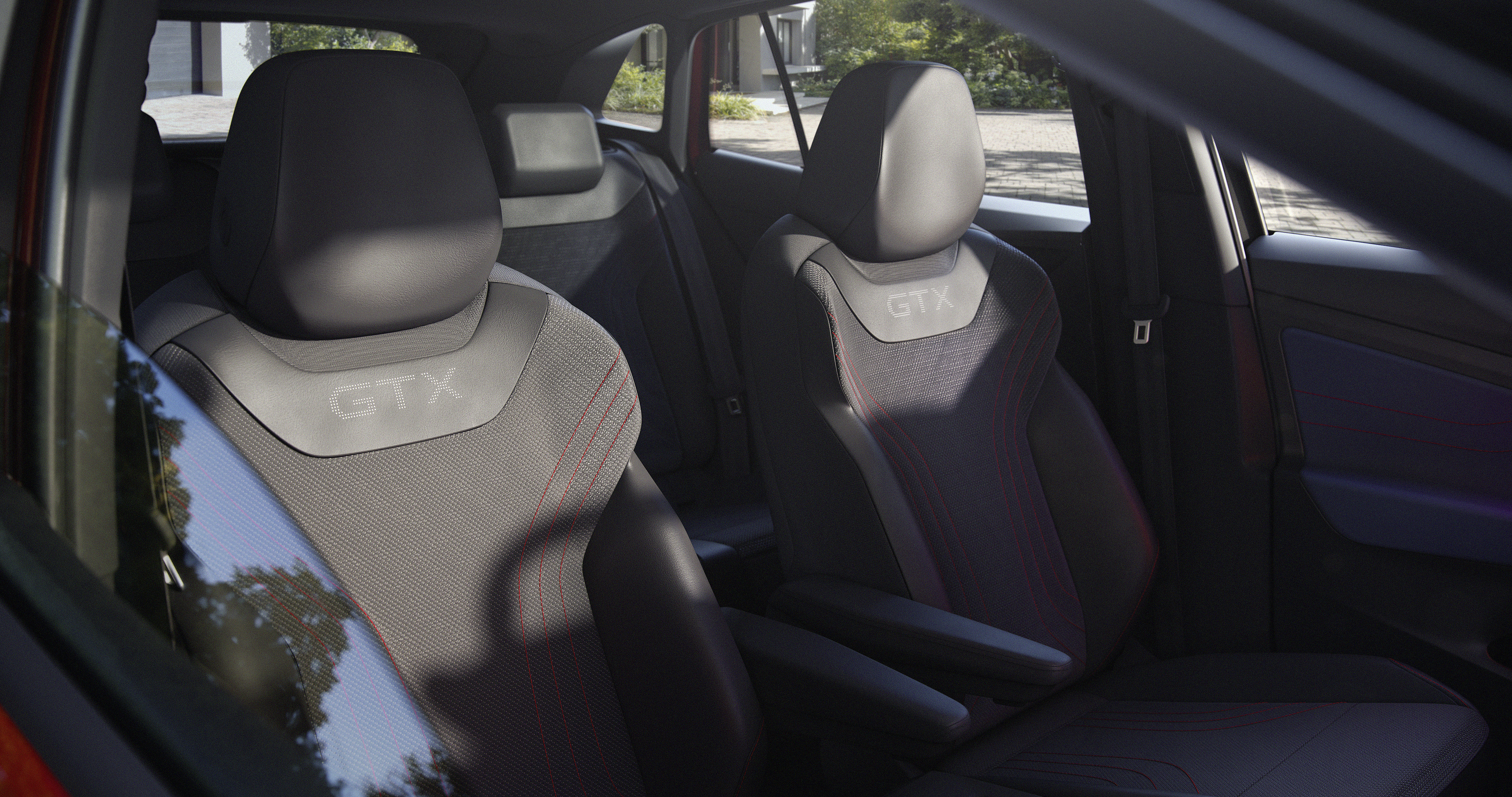 Ett nytt färgschema för interiören gör bilens sportiga, eleganta och moderna stil extra tydlig. Den dominerande färgen i kupén är en mörk nyans av ”Soul”. Instrumentpanelens övre sektion går liksom konstläderinläggen på dörrarna i en djup nyans av ”X-Blue” som står för hållbarhet. Röda kontrastsömmar är en klassisk symbol för sportighet. Ett GTX-märke finns på ratten, instegslisterna och – i perforerad form – längst upp på ryggstöden fram.