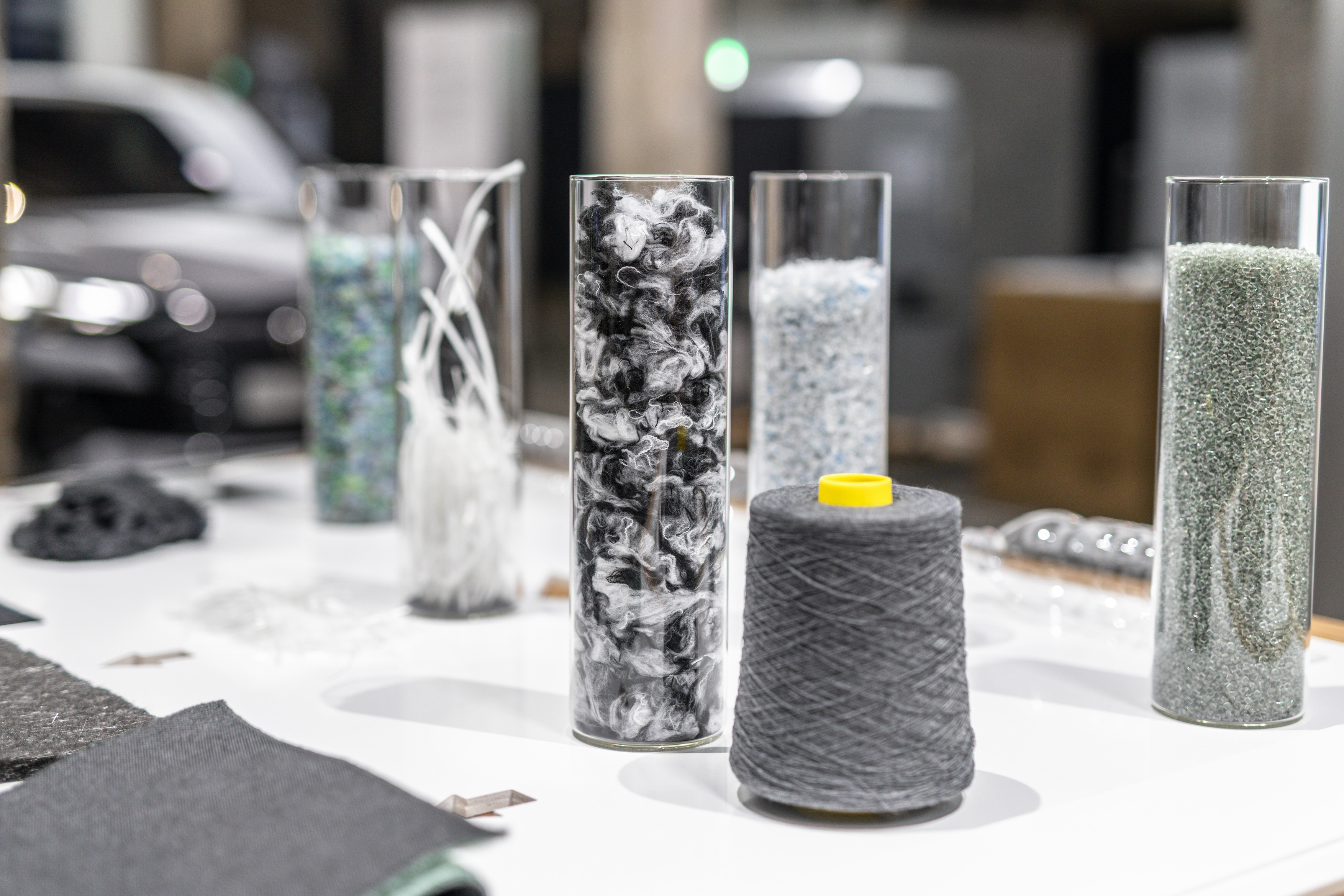 Golvklädseln och mattorna i Audi e-tron GT är tillverkade av Econyl – ett material som består av 100 procent återvunna nylonfibrer som kommer från produktionsavfall, matt- och och tygrester, eller gamla fiskenät. I Audi A3 finns upp till 45 stycken 1,5-liters PET-flaskor i sätena.