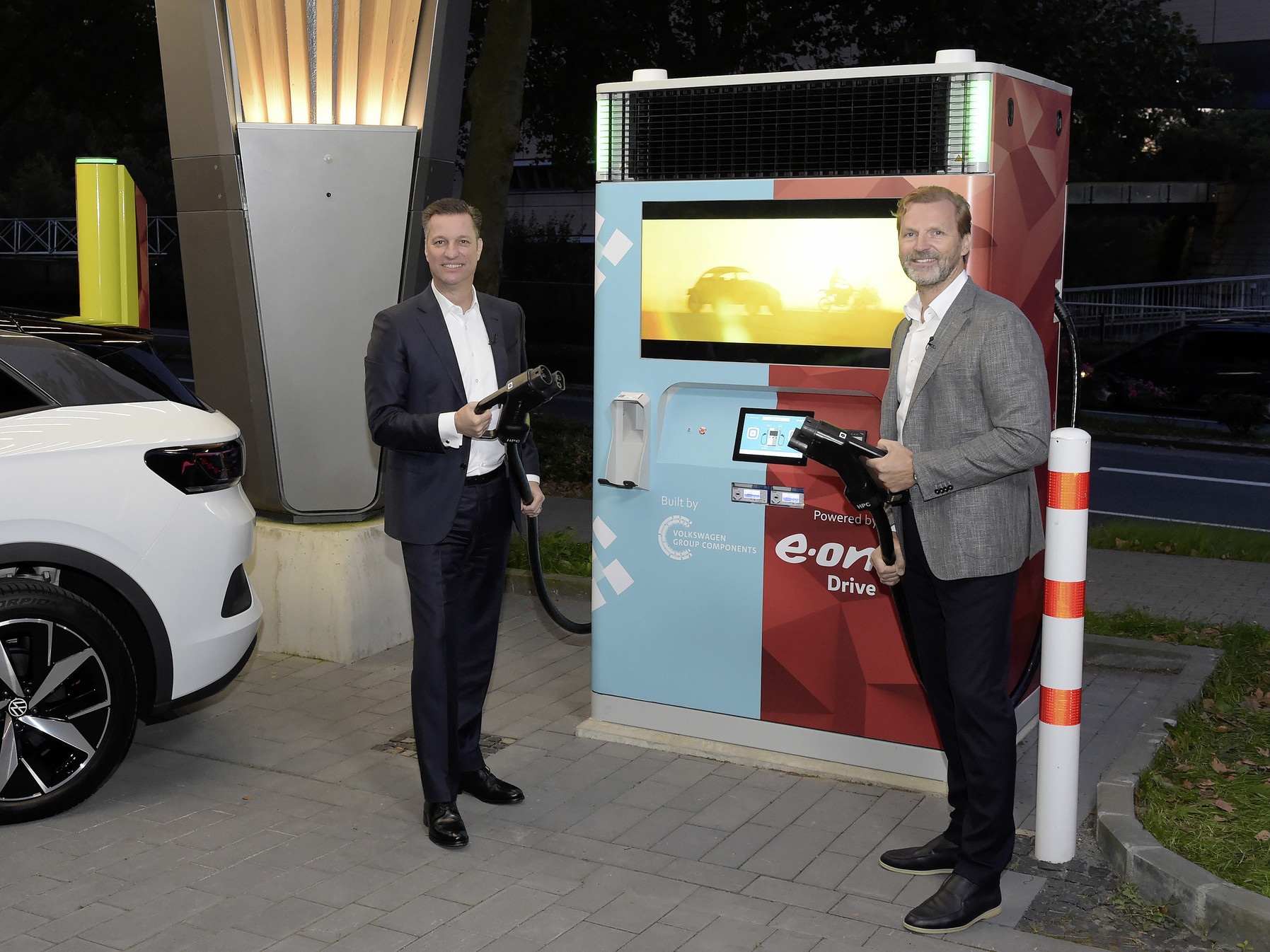 I Essen startades den 22 september den första snabbladdaren E.ON Drive Booster. Laddstationen invigdes av Patrick Lammers, ansvarig för kundlösningar i koncernledningen på E.ON och Thomas Schmall, teknikansvarig i koncernledningen på Volkswagen Group Components. Den innovativa produkten gör snabb laddning enklare och billigare för operatörer och kunder. Den flexibla snabbladdaren kräver inga anläggningsarbeten eller justeringar av nätanslutningen och kan ladda två elfordon samtidigt med 150 kW. Detta innebär att utbyggnaden av ett tätt offentligt nätverk med snabbladdningsstationer kan bli verklighet mycket snabbare än vad som tidigare beräknats, vilket är avgörande för e-mobilitetens utveckling och framgång.