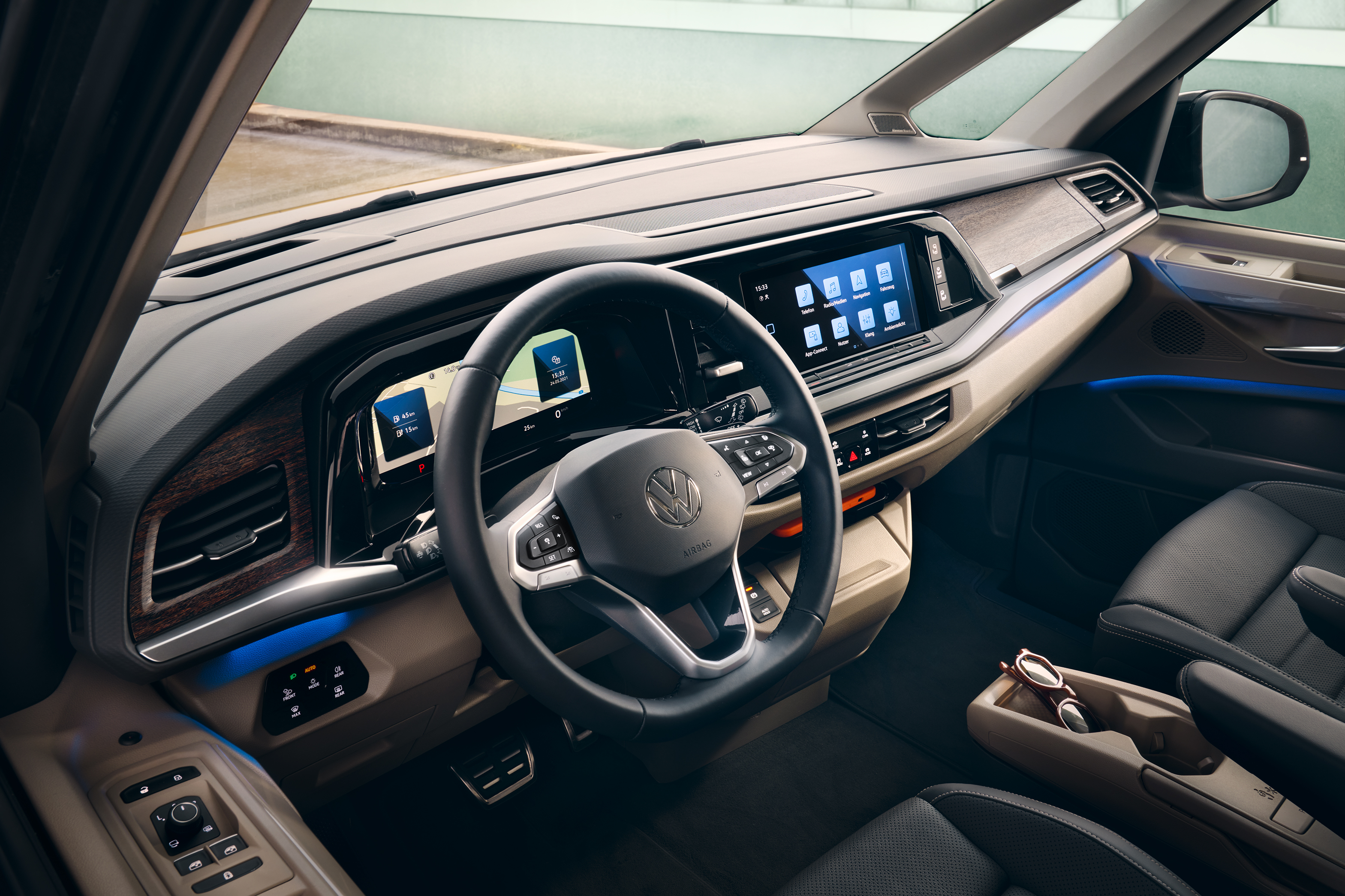 Det finns tre olika utrustningsversioner att välja mellan och redan grundversionen ”Multivan”, kommer med det mesta man kan önska sig av en modern personbil. Parkeringsvärmare, LED-strålkastare och bakljus, digitala instrumenttavlor och 10’’ infotainment med App-connect och DAB-radio, Keyless Go, Farthållare, Front- och Lane Assist är några exempel på den rikliga standardutrustningen. Nästa nivå är ”Life” där man får en hel del extra designdetaljer och smarta förvaringsfack, liksom USB-C uttag runt om i bilen. Parkeringssensorer, elektriskt justerbart svankstöd, armstöd, ljus- och siktpaket och en igenstängningshjälp av sidodörrarna är andra exempel på vad som ingår i Life-versionen. Den lyxigaste versionen heter ”Style” och innehåller bland annat LED Matrix-strålkastare med en ljuslist i grillen, exteriört krompaket, interiör stämningsbelysning, 3-zons klimatanläggning, elektriska sidodörrar och Art-Velour stolklädsel.