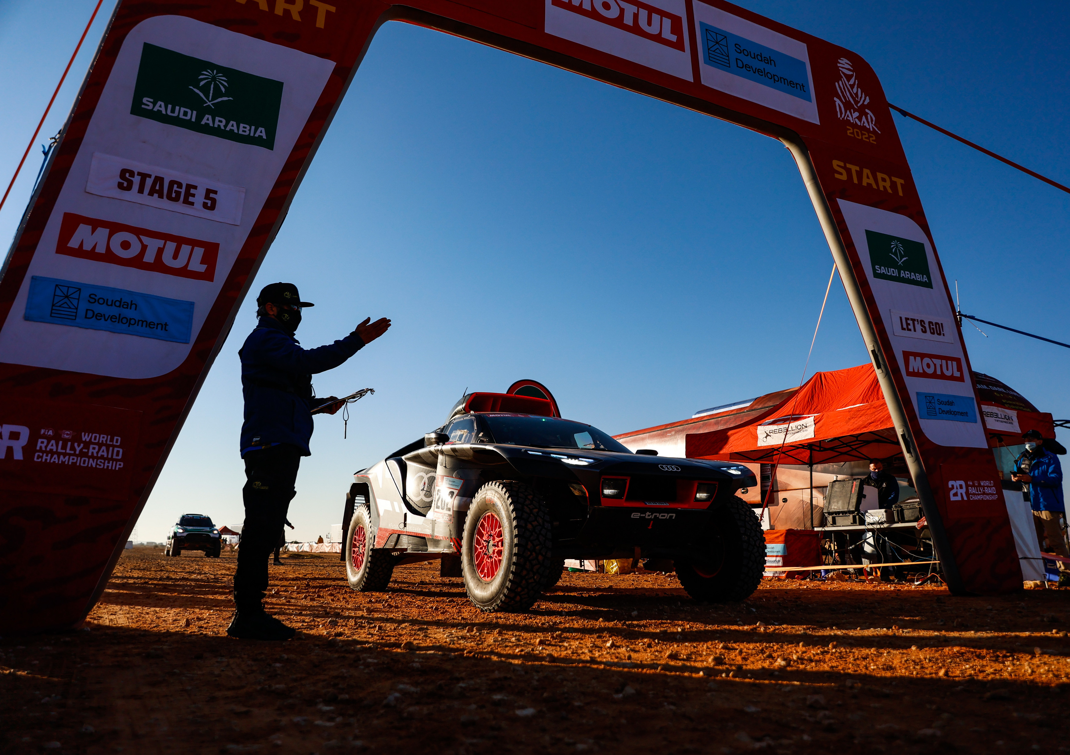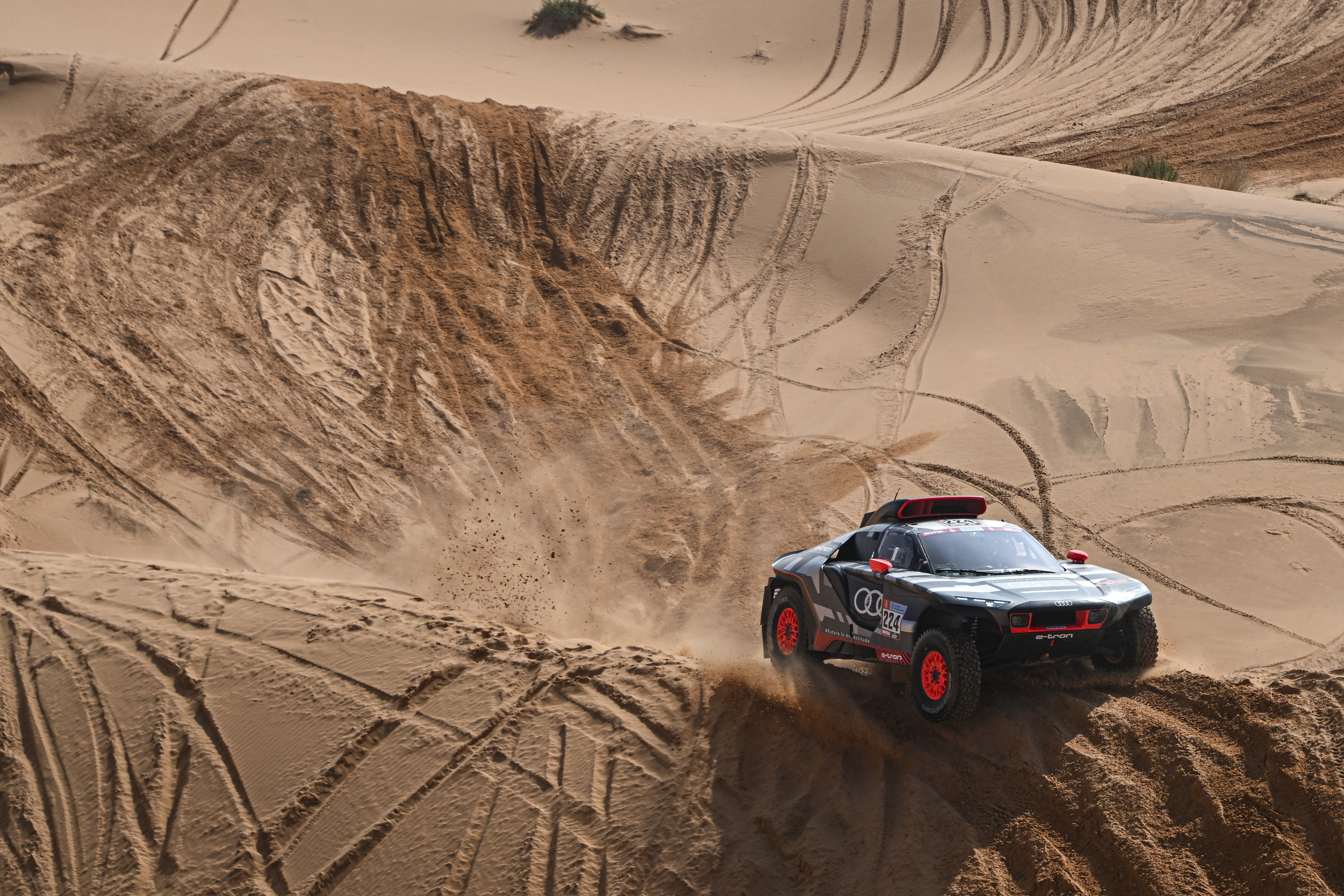 Carlos Sainz/Lucas Cruz väckte stor uppmärksamhet redan på den fjärde tävlingsdagen. De trefaldiga Dakar-vinnarna lyckades ta en första etappseger med Audi RS Q e-tron på den 338 km långa specialsträckan från Al Artawiya till Al Qaisumah i den saudiska öknen. De två spanjorerna hade en snitthastighet på 138 km/h – en imponerande siffra med tanke på förhållandena på sträckan som kördes. Hela teamet från Audi Sport tog emot etappsegrarna med jubel när de anlände till bivacken.