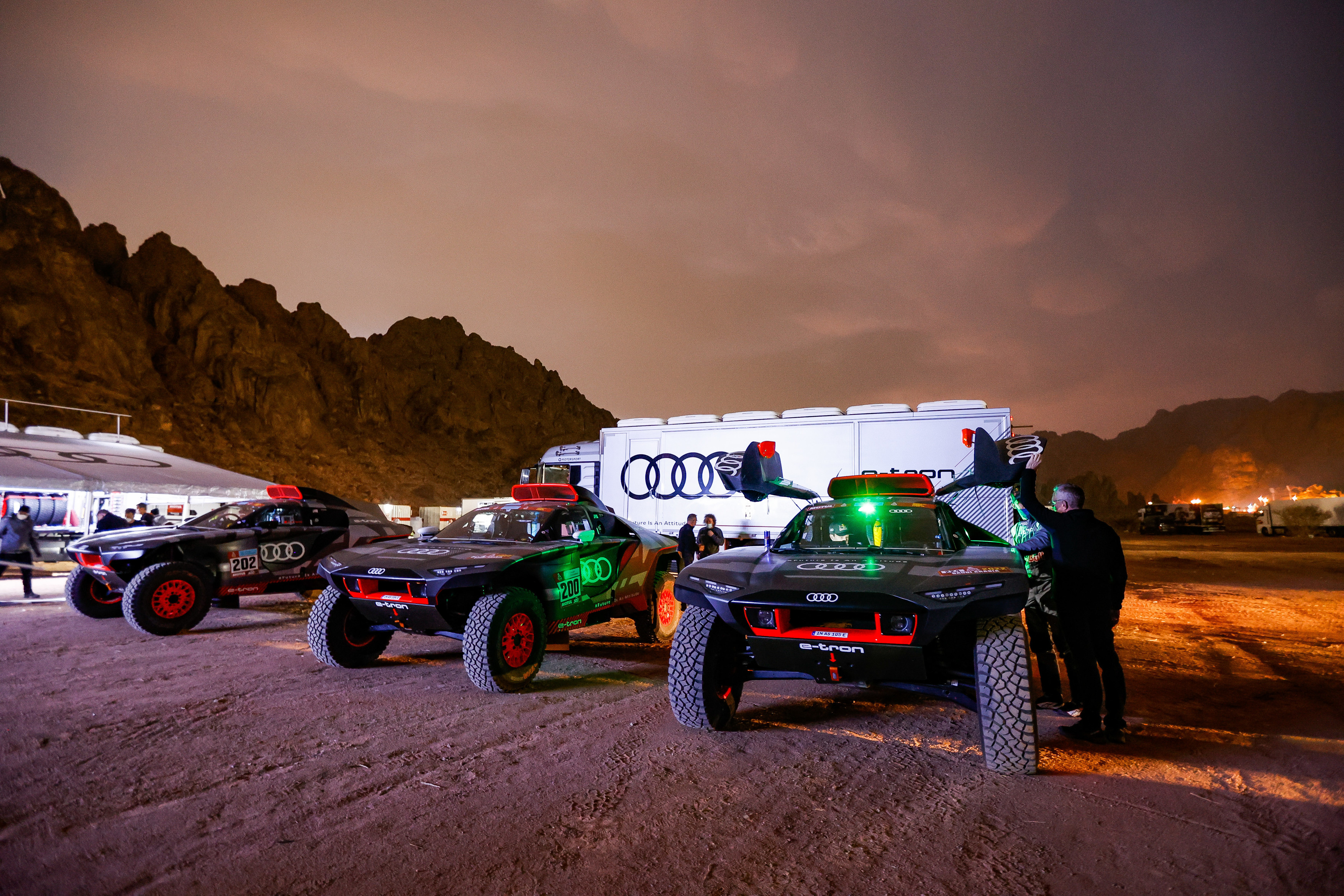 Teamet har redan infört förbättringar av bilen inom många områden på plats, men Stefan Dreyer, utvecklingschef för Audi Sport racing, har en lista över optimeringspunkter som fylls på efter varje etapp. "Vi blev förvånade över att de enda hindren hittills har varit inom konventionella områden som hjulupphängningen. Det är imponerande att vårt innovativa och hårt belastade drivkoncept har fungerat felfritt så här långt och att bilens prestanda också är den rätta", säger Dreyer. Samtidigt vet vi att rallyt fortfarande har en lång väg kvar. Vårt mål är fortfarande att komma fram till Jeddah om en vecka med alla tre bilarna."