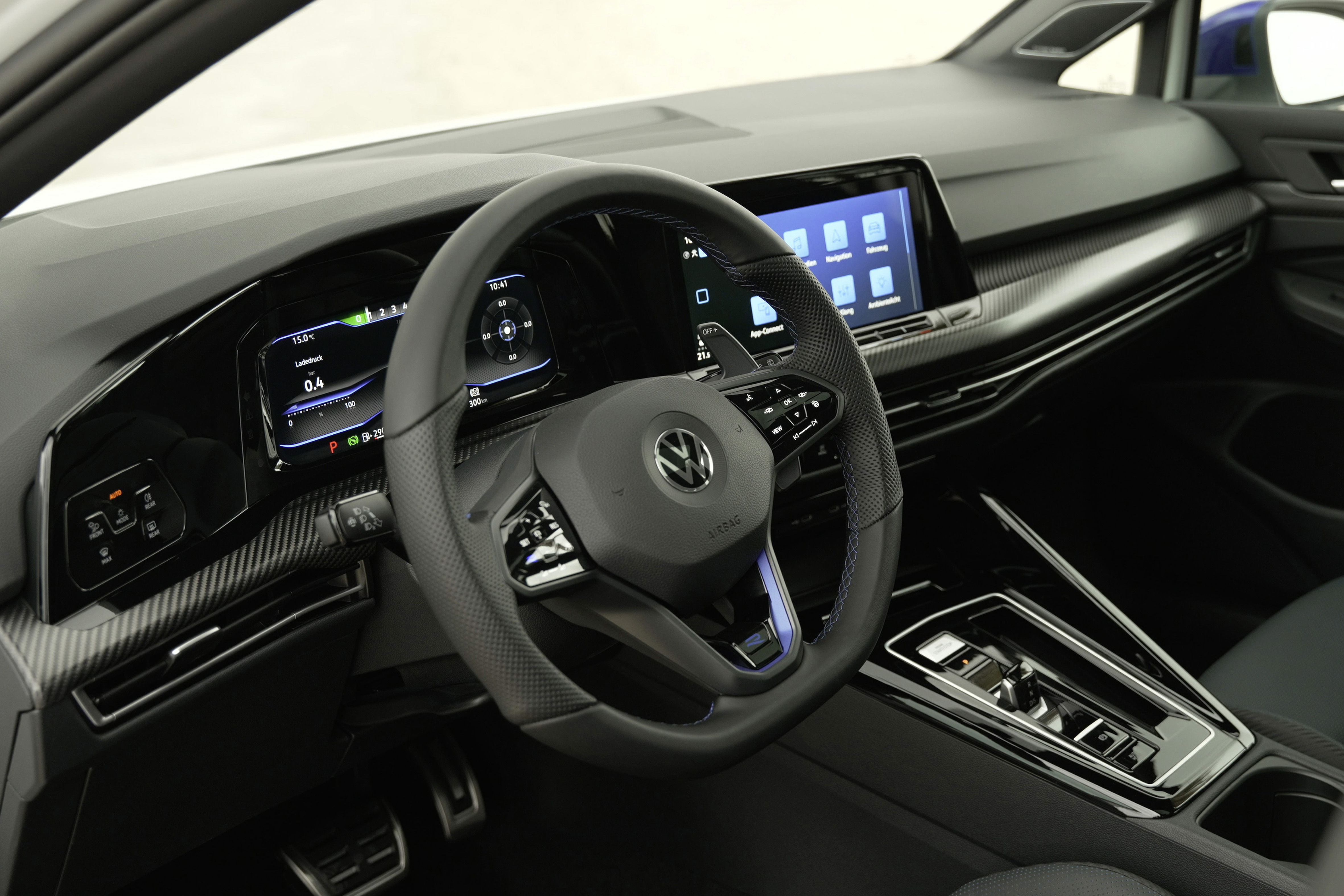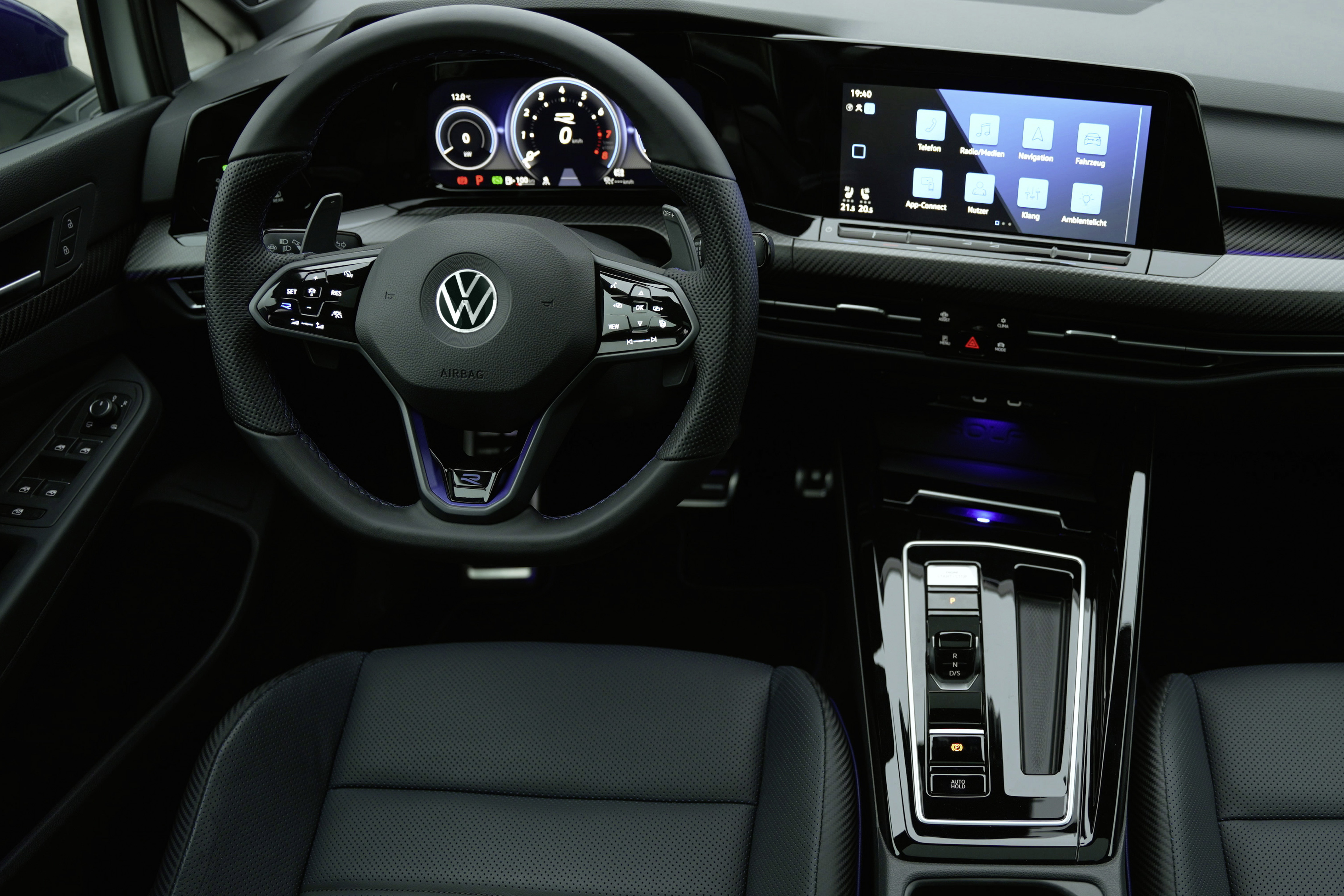 • Kolfiber i kupén. Golf R "20 Years" blir den första serietillverkade Volkswagen som levereras med högklassiga dekordetaljer i äkta kolfiber.