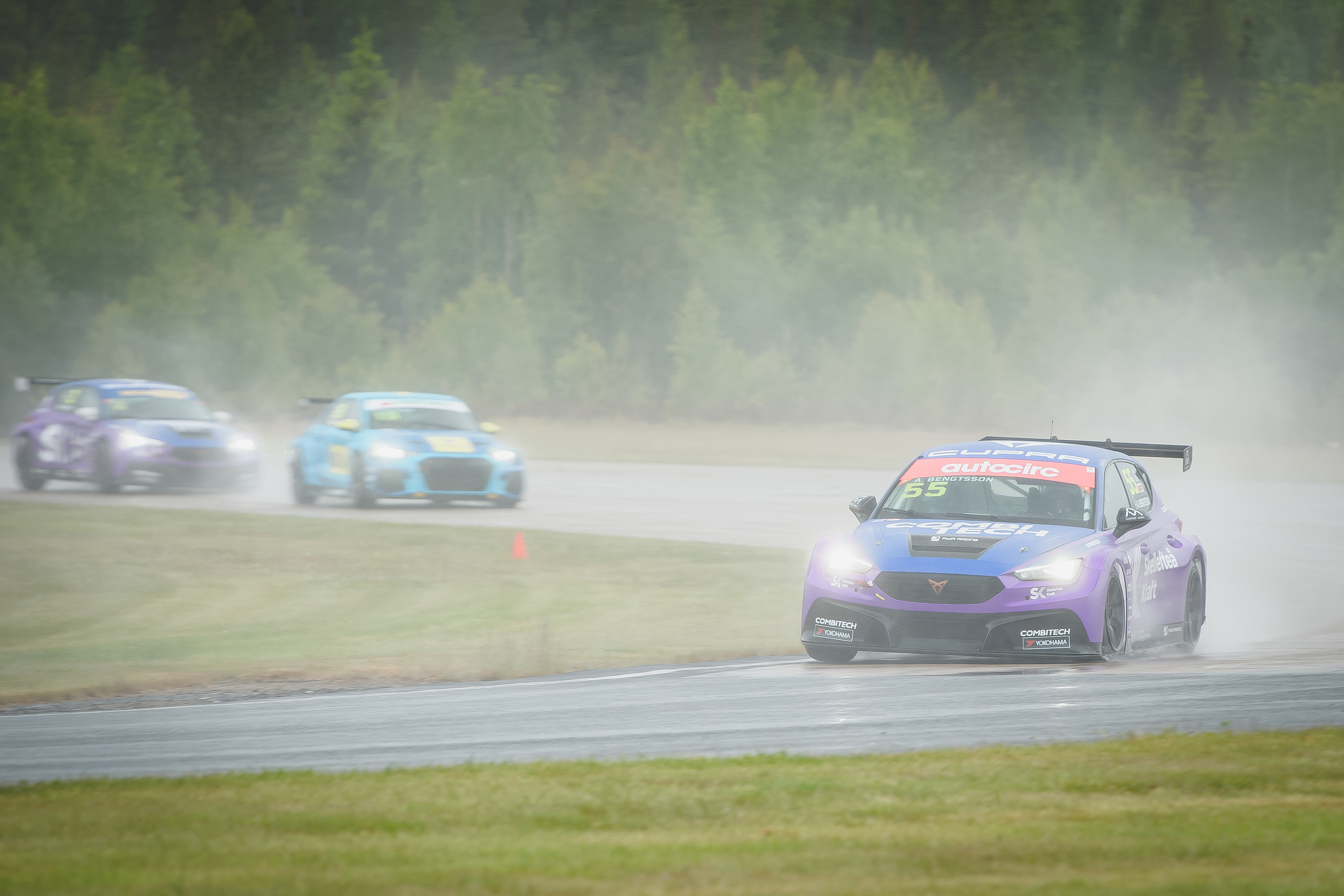 Teamkollega Axel Bengtsson fick kämpa hårt i de svåra förhållandena där kvaldagens varma och helt torra bana byttes mot hällregn och låga temperaturer under lördagens tre tävlingar.