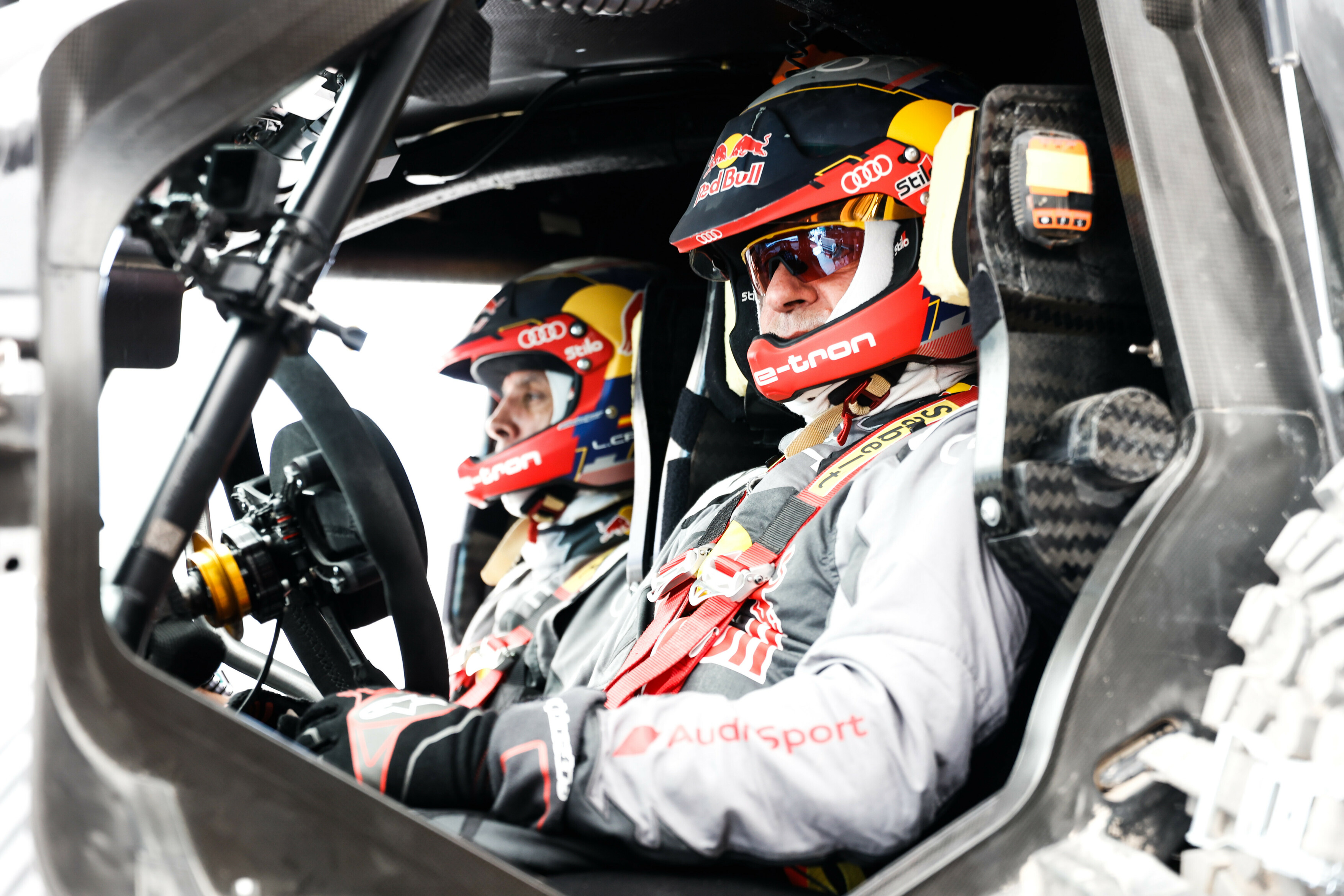 Audi-förarna Mattias Ekström/Emil Bergkvist, Stéphane Peterhansel/Edouard Boulanger och Carlos Sainz/Lucas Cruz kan se fram emot sina nya arbetsplatser. Displayerna är fortfarande placerade i förarens synfält och i mittkonsolen, och mittreglaget med sina 24 fält har också bibehållits. Teknikerna har dock omstrukturerat displayer och reglage. ”Alla funktioner gör det snabbt oöverskådligt”, säger Florian Semlinger. "Förare och co-driver kan nu välja mellan fyra systemområden med hjälp av ett vred. ”Etapp” innehåller alla funktioner som är viktigt när du tävlar – t.ex. farthållare i etapper med hastighetsbegränsning eller höjning av bilen. ”Väg” innehåller t.ex. blinkers och backkamera, funktioner som efterfrågas på anslutningssträckor. ”Error” används för att upptäcka, kategorisera och katalogisera fel. Under ”Inställningar” finns allt grupperat som är användbart för konstruktionsteamet under testningen eller efter att bilen anlänt till bivouaken, t.ex. temperaturen i enskilda system.