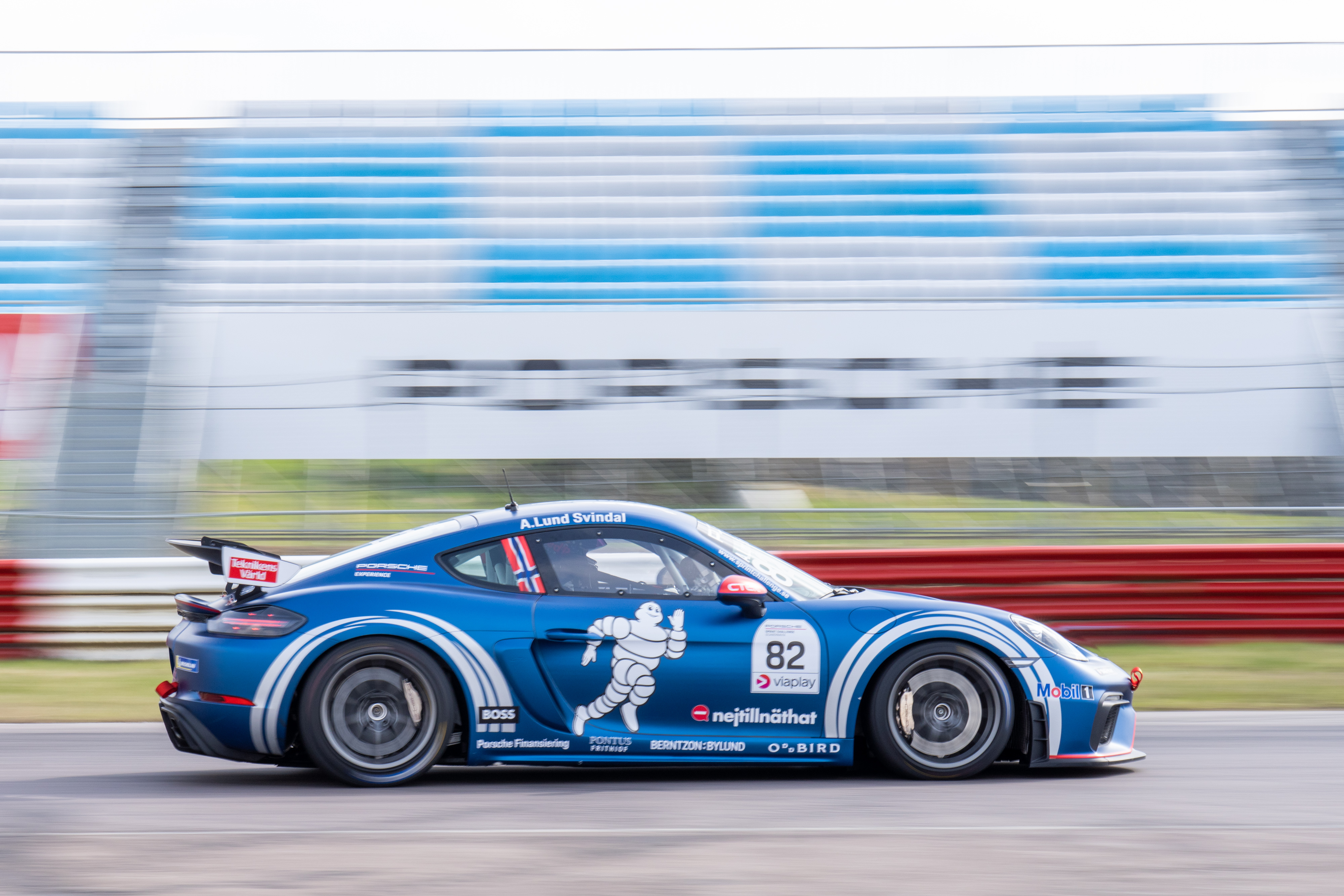 I Porsche Sprint Challenge Scandinavia körde Lund Svindal Porsche 718 Cayman GT4 Clubsport, en fabriksbygd racerbil med en mittmonterad 425 hk stark boxermotor och hjälpsystem i form av ställbar ABS och Traction Control/ ESC. I Porsche Carrera Cup Scandinavia kör samtliga förare senaste generationen Porsche 911 GT3 Cup, även det en fabriksbygd racerbil, med bakmonterad boxermotor på hela 510 hk i kombination med avsaknad av ABS och andra hjälpsystem.
