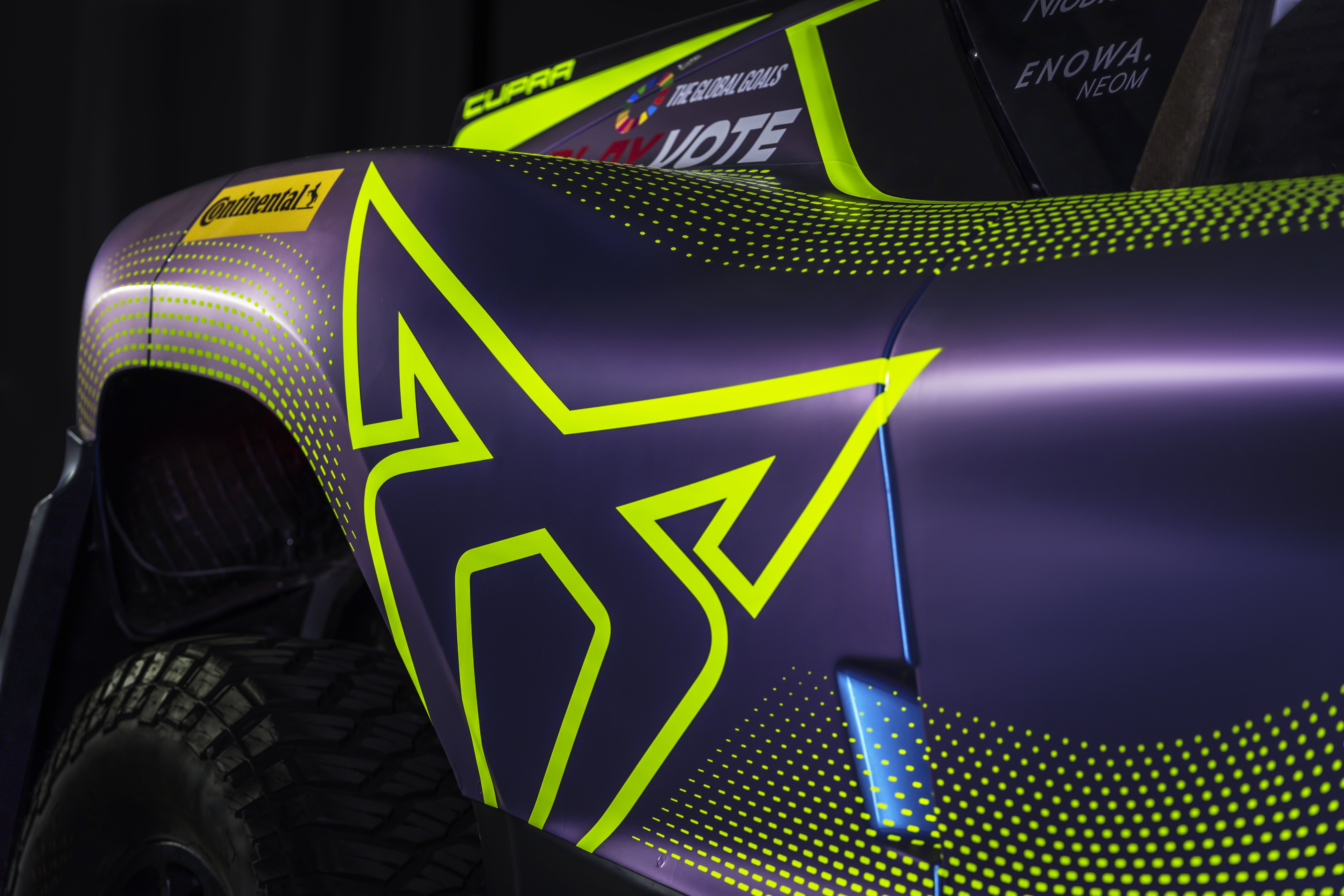 Den här säsongen har teamets tävlingsbil fått ett nytt utseende som matchar UrbanRebel, Formel e-bilen ABT CUPRA GEN3 och CUPRA e-Racer. En flerlagers- och kameleontfärgad kaross som kombinerar djuplila och neongult. Denna helt eldrivna offroad-racer visar upp formspråket hos kommande CUPRA Tavascan, märkets andra 100% eldrivna modell, som är designad i Barcelona och kommer att nå Europa och världen under 2024.