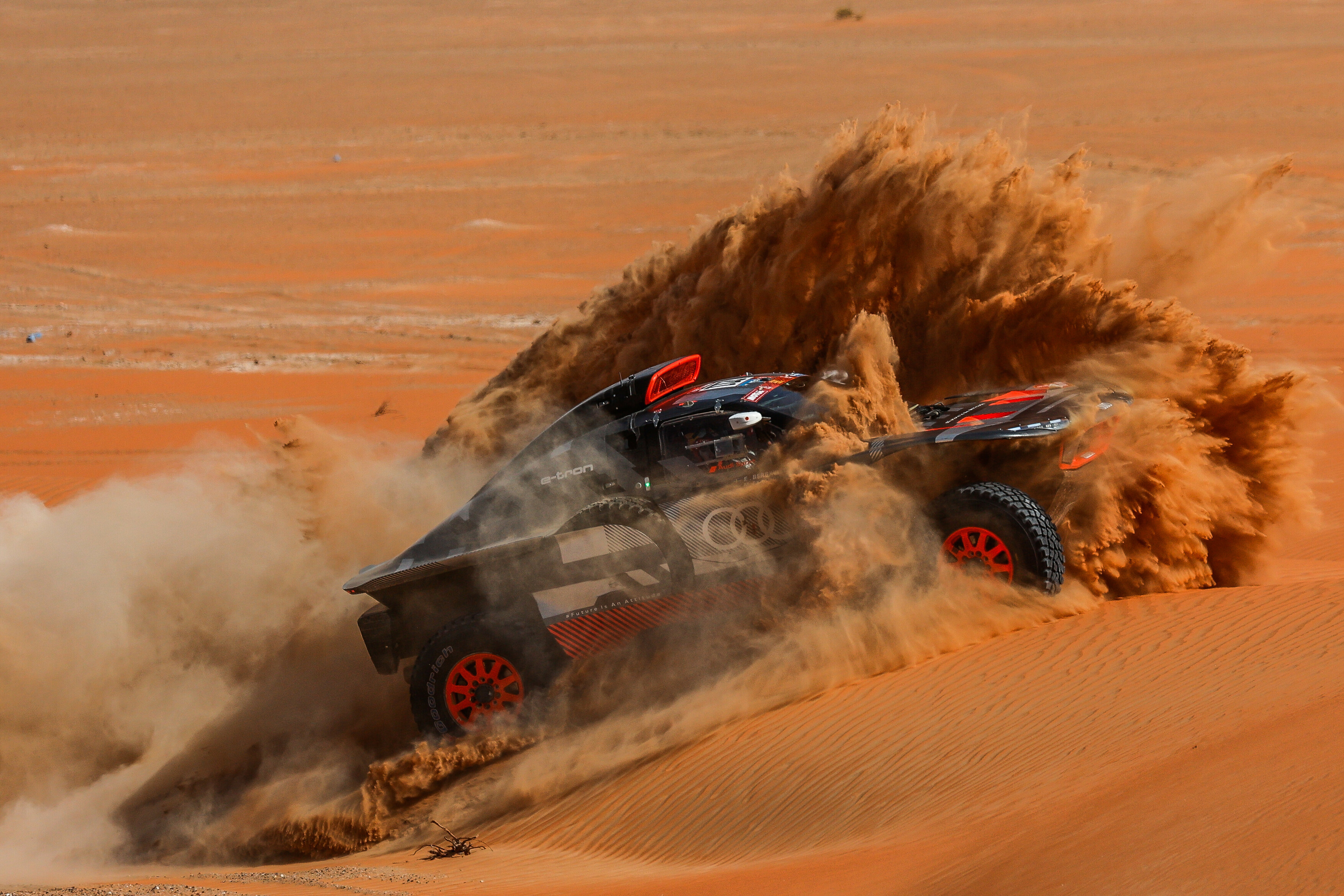 Mattias Ekström/Emil Bergkvist ledde världens tuffaste ökenrally redan efter prologen och deras teamkamrater Carlos Sainz/Lucas Cruz tog över ledningen under de två följande dagarna. Men en serie på 14 punktering under de 4 första etapperna, fördelade över alla tre förarteamen, kostade Audi värdefullt tid. Fler bakslag följde när Carlos Sainz skadade fjädringen under den tredje etappen och råkade ut för en olycka under den sjätte. Under den sjunde etappen förstördes hjulupphängningen på Ekström/Bergkvists bil av en sten som låg osynlig i ökendammet. 14-faldiga Dakarvinnaren Stéphane Peterhansel hade då brutit tävlingen efter en luftfärd från sanddynerna. Bilen landade så hårt att andreföraren Edouard Boulanger fördes till sjukhus med ryggont och därefter behandlades av specialister i Tyskland.