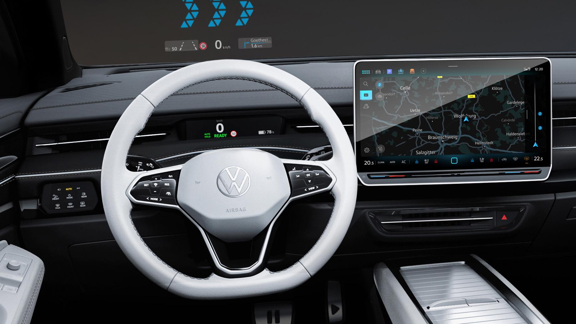 Det nya luftkonditioneringskonceptet med intelligenta luftinsläpp erbjuder ett antal funktioner. ID.7 kan till exempel känna av när föraren närmar sig med hjälp av sin nyckel och börjar kyla kupén redan innan föraren sätter sig i bilen under varma sommardagar eller värmer upp kupén kalla dagar. Nydesignade ”Smart Air Vents” styr luftflödet och rör sig dynamiskt för att fördela luften över stora ytor så snabbt som möjligt.