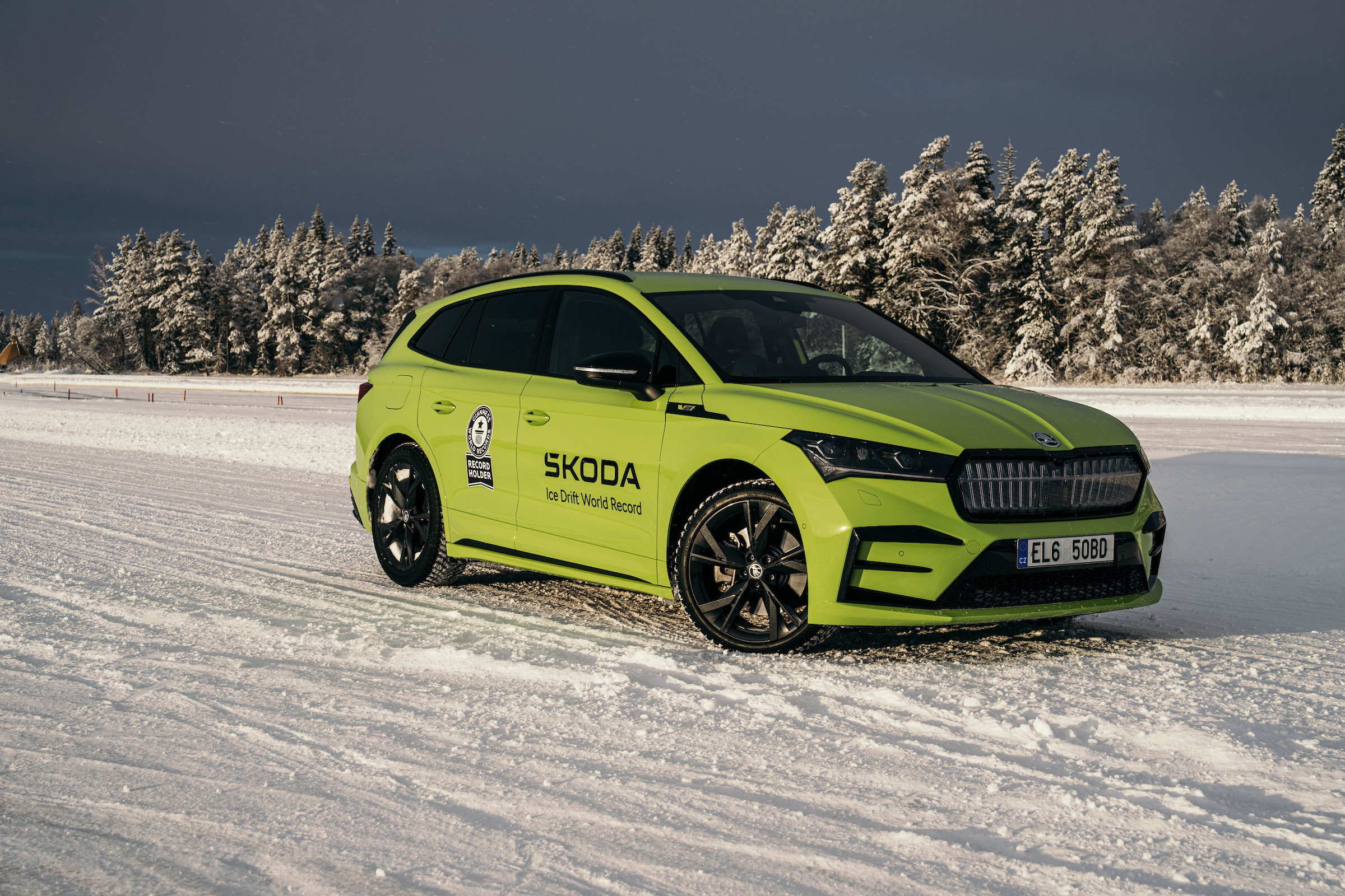 Enyaq RS iV klarade av krävande förhållanden och körde runt driftcirkeln 39 gånger under 15 minuterna och 58 sekunderna av sin rekordlånga körning. Den uppnådde en topphastighet på 48,69 km/h. Bilen som användes för att fullborda rekordet var utrustad med 20-tums lättmetallfälgar. Däckproffsen 245/35-R20 "event tyres" (från Michelin) på framdäcken hade 600 5 mm dubbar, vilket möjliggör en ännu bättre dragkraft och styrinsats på den frusna grepplösa ytan; medan Nokian Hakkapelitta 255/45-R20-däcken monterade på bakhjulen hade 300 2 mm dubbar över däckytan, vilket visade sig vara den idealiska kombinationen på den 40 cm djupa isytan.