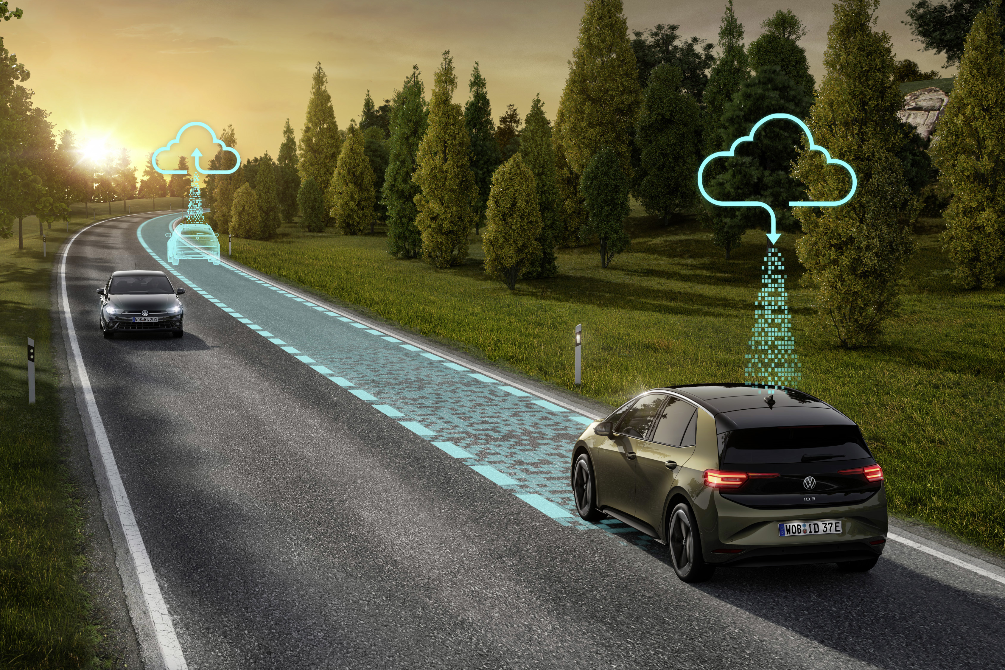 Med ID.3 erbjuder Volkswagen redan förstklassiga teknologier och innovationer i kompaktklassen. Användningen av molndata i den nuvarande versionen av Travel Assist-systemet (tillval) representerar nästa steg på vägen mot högautomatiserad körning. Park Assist Plus med minnesfunktion (tillval) möjliggör automatisk hämtning och användning av sparade parkeringsmanövrar. Den molnbaserade röststyrningsfunktionen och Head-up-Display (tillval) med förstärkt verklighet i nya ID.3 gör också vardagskörningen enklare.