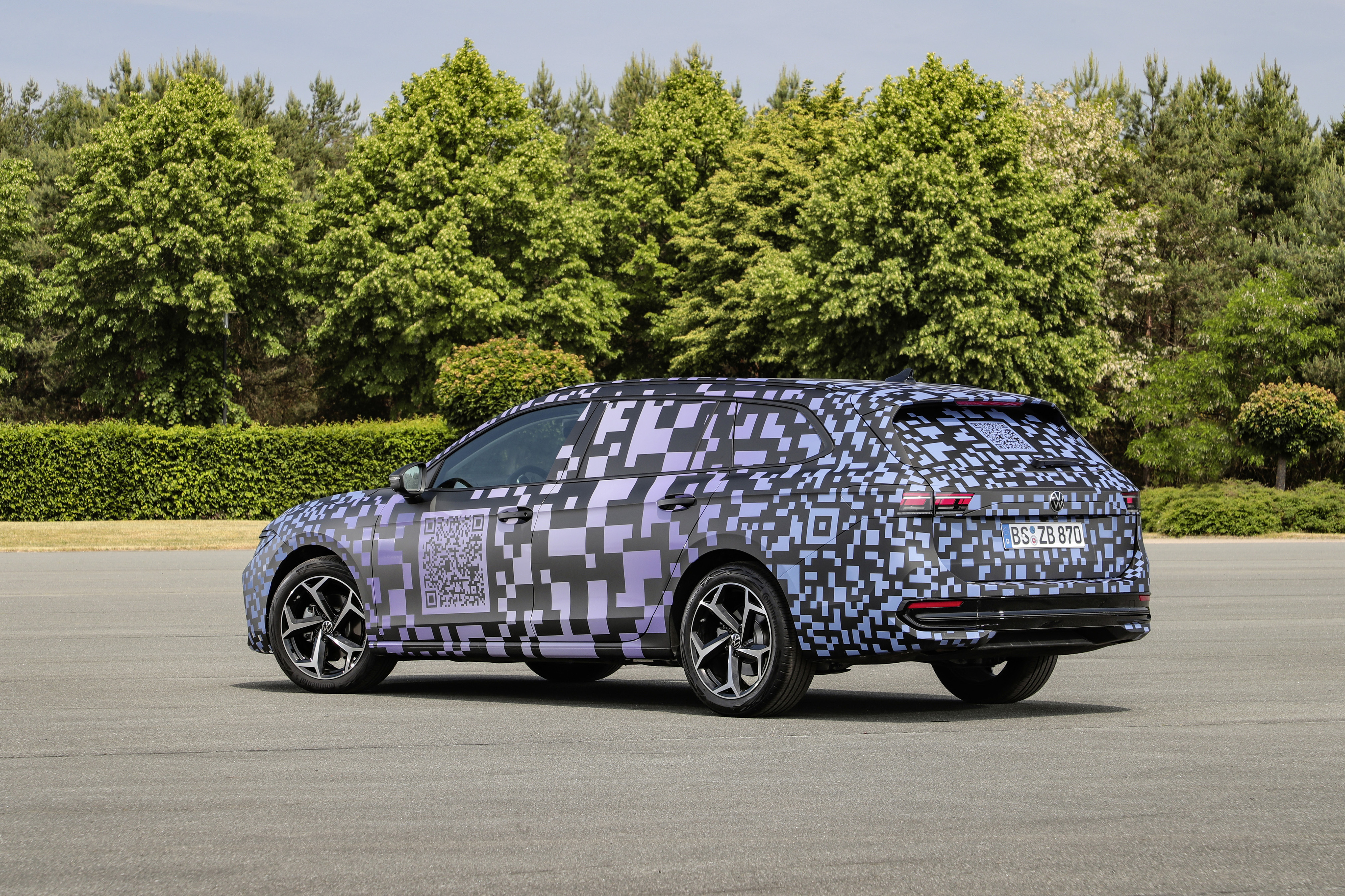 * Nya Passat Sportscombi – kamouflerad prototyp nära serietillverkning. Modellen är ännu inte tillgänglig för försäljning.