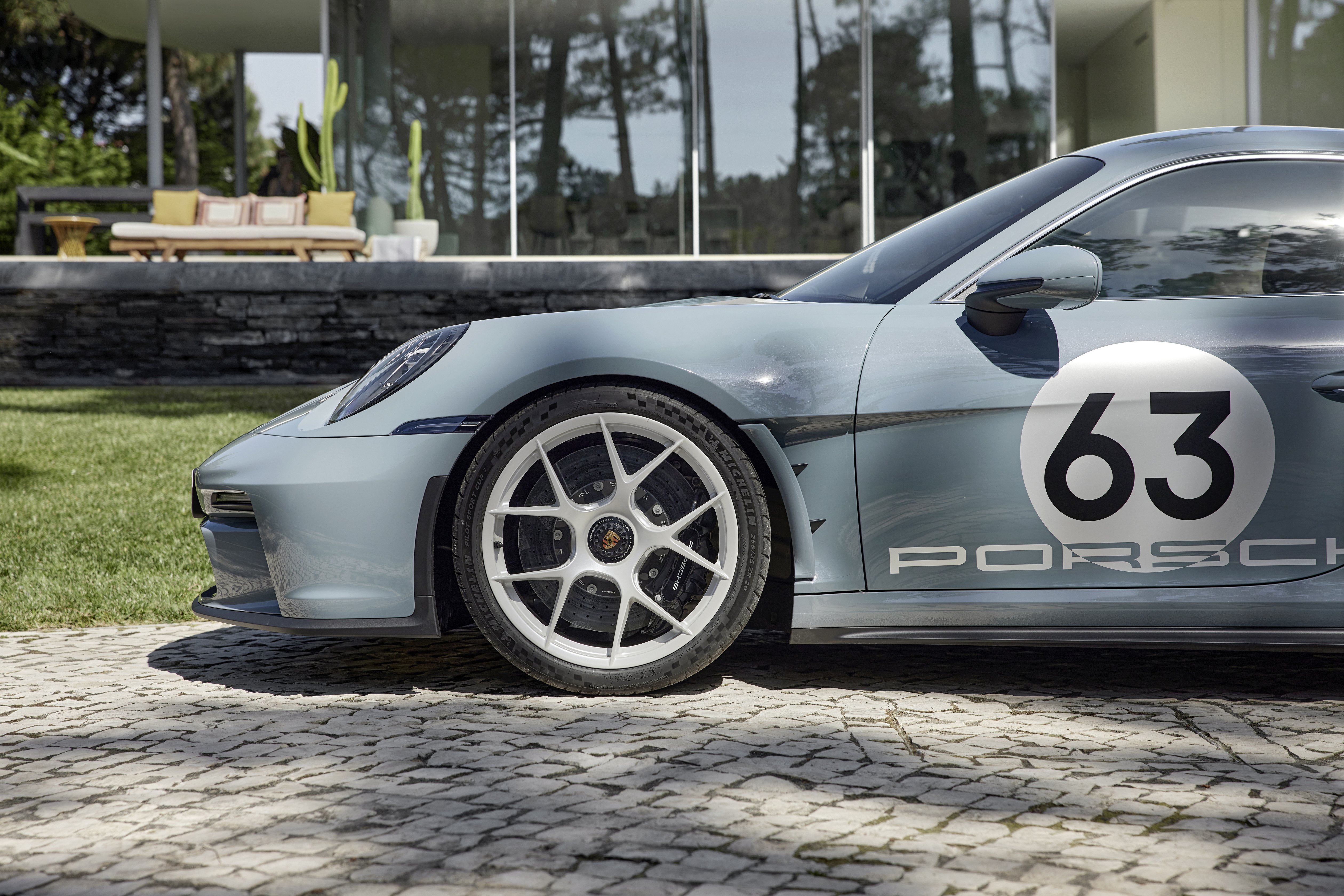 Som tillval erbjuds 911 S/T med ett exklusivt Heritage Design-paket. Den nya exteriörfärgen Shore Blue Metallic och fälglacken Ceramica finns enbart till den här eleganta varianten. På begäran kan startnummer från 0 till 99 appliceras på dörrarna.